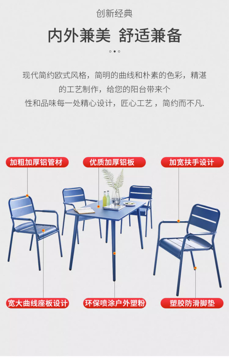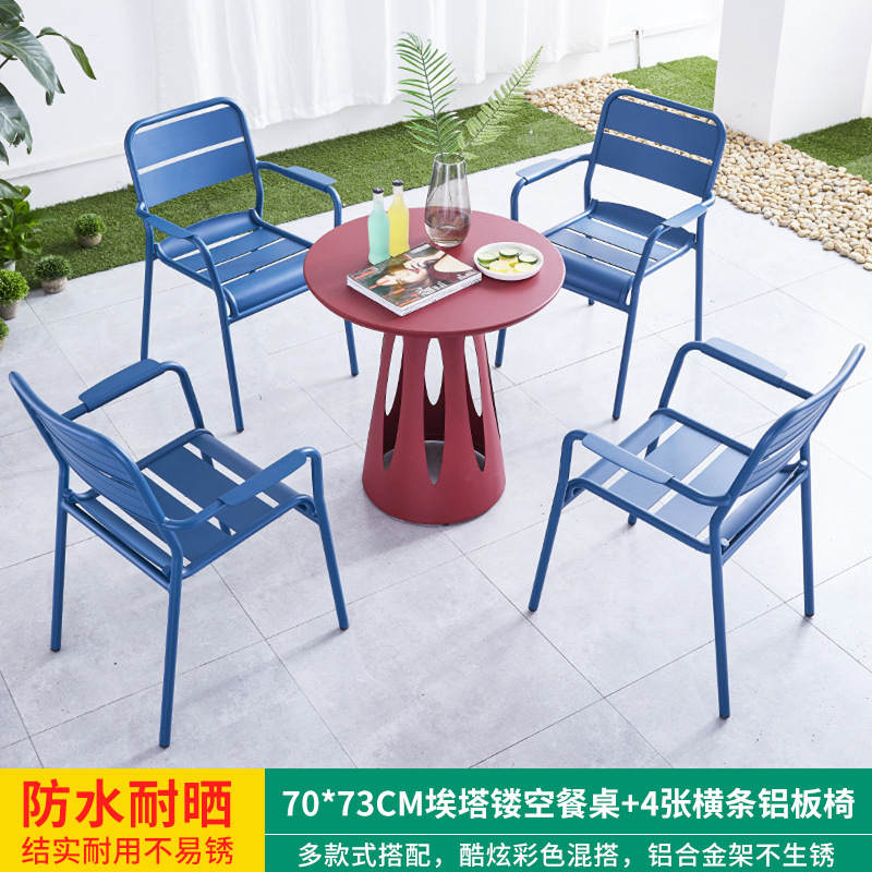 • 70*73cm ETA 중공 테이블 + 4 수평 알루미늄 의자