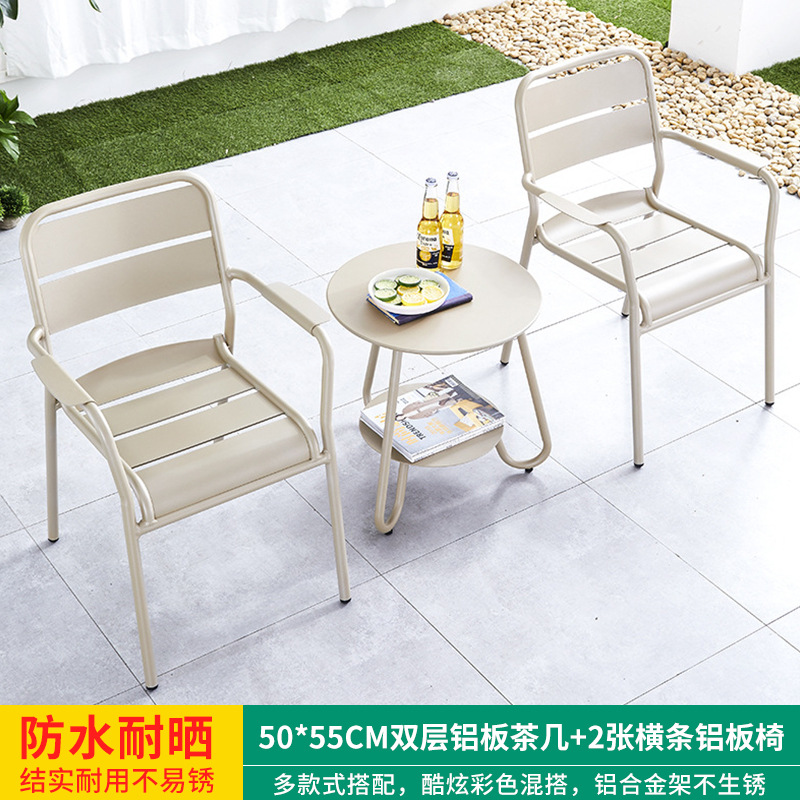 • 50*55cm 더블 알루미늄 티 테이블 + 2 수평 알루미늄 의자