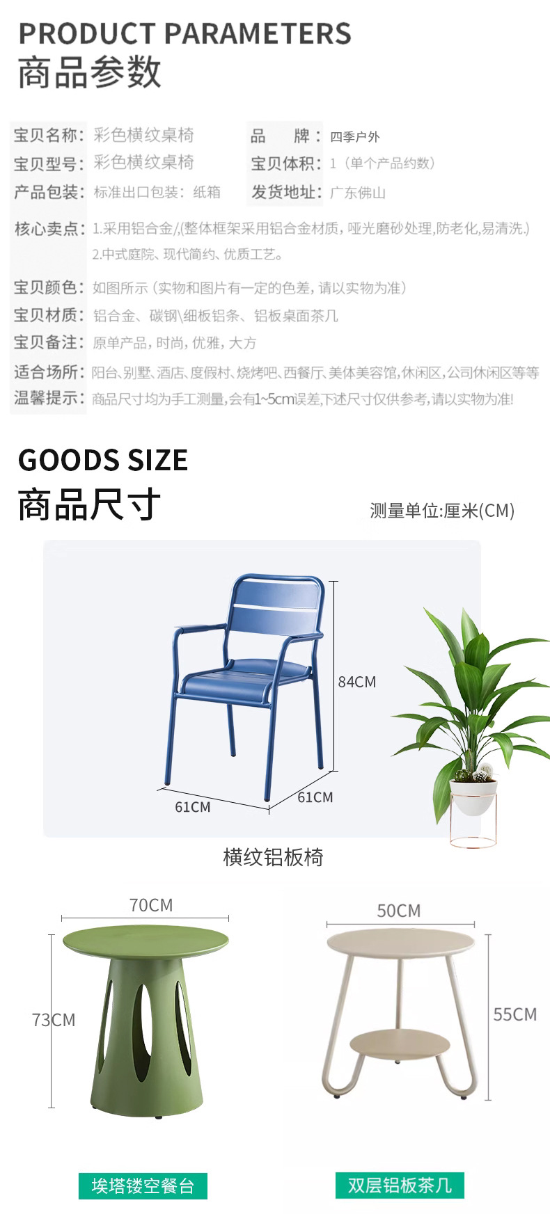 • 50*48cm ETA 소형 티 테이블 + 수평 알루미늄 의자 2 개