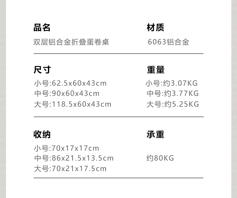 • 호두 더블 레이어 알루미늄 합금 계란 롤 테이블 [스몰 사이즈]