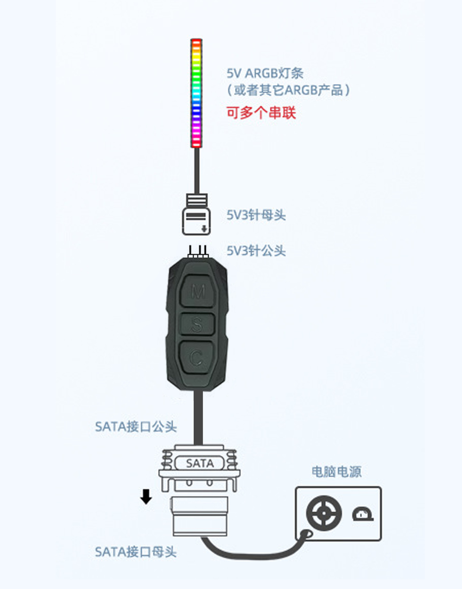 ARGB5V3 핀 미니 버튼 수동 컨트롤러 라이트 매직 컬러 5V3 핀 SATA 전원 공급 신성한 빛 동기화스토어 가기