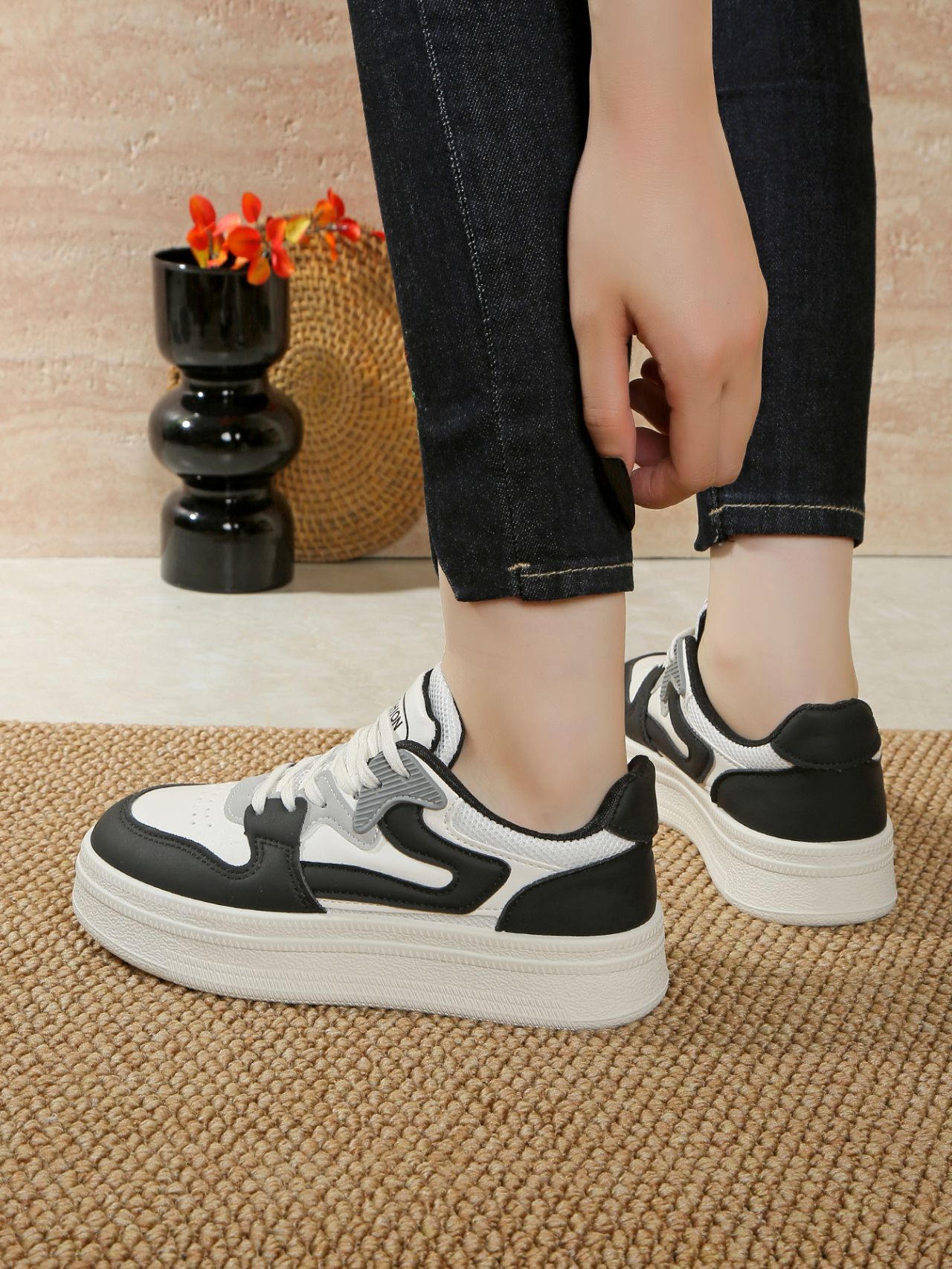 여성용 로우탑 두꺼운 밑창 신발 가을 겨울 전국 트렌디 신발 여성용 2023 새로운 틈새 Instagram 트렌디 올매치 캐주얼 스포츠 스니커즈스토어 가기