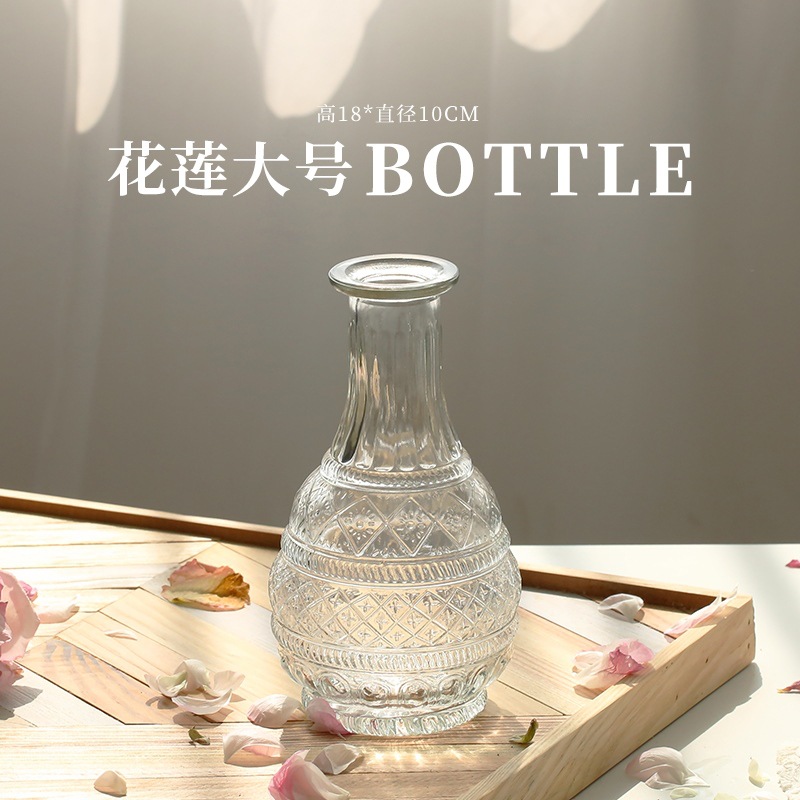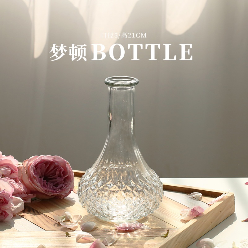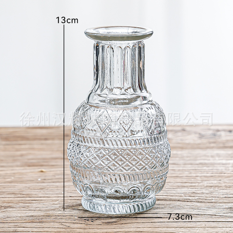 유럽식 말린 꽃 양각 작은 구경 미니 유리 꽃병 제품 꽃꽂이 수경 식물 용기 병