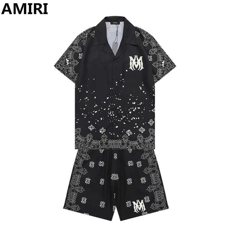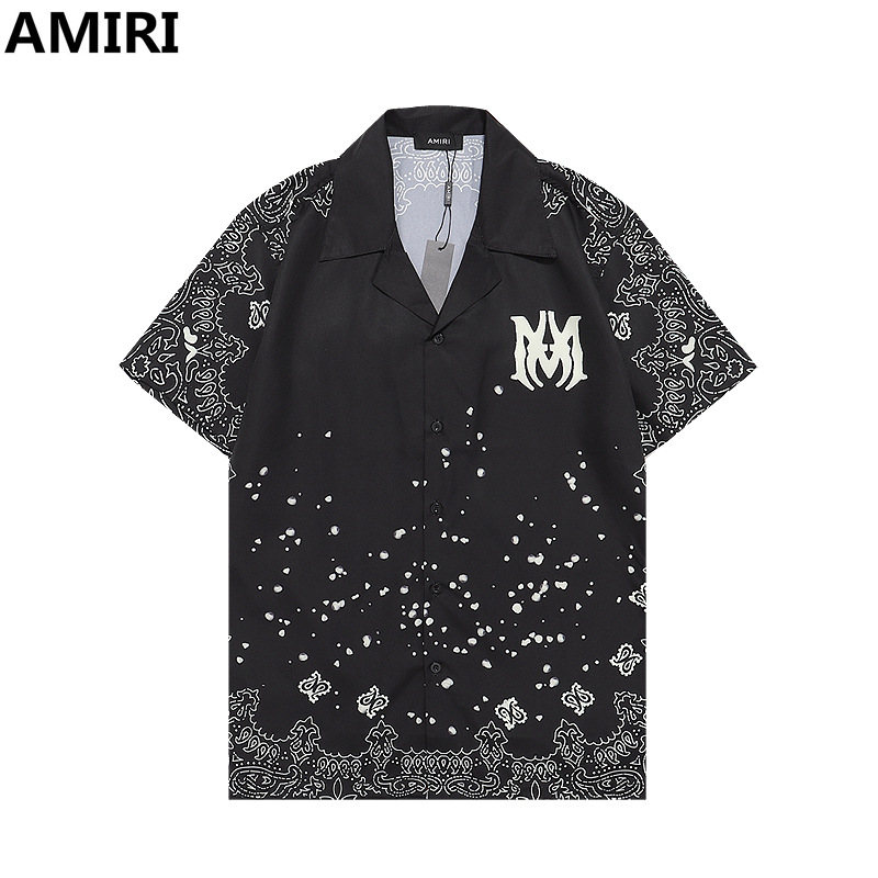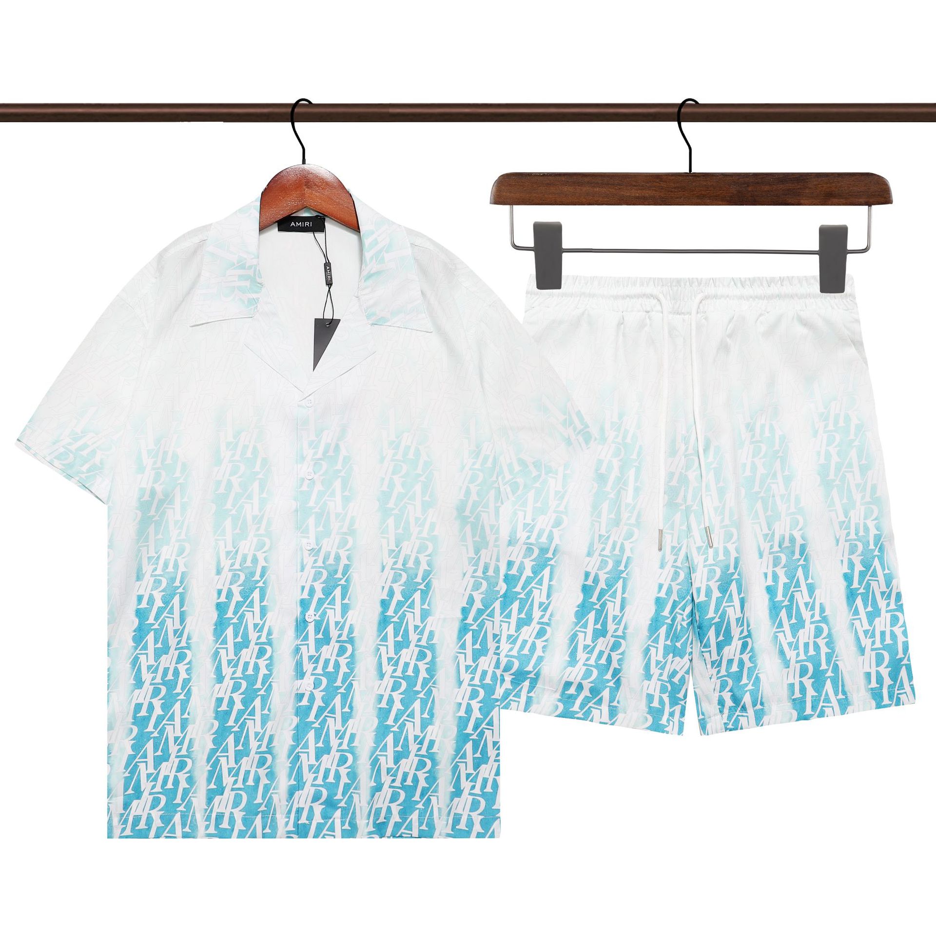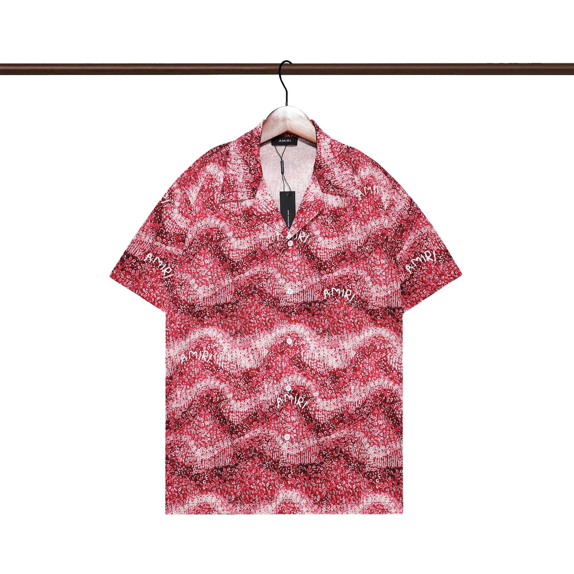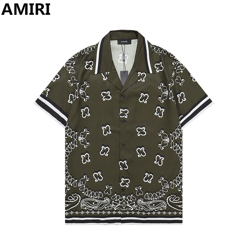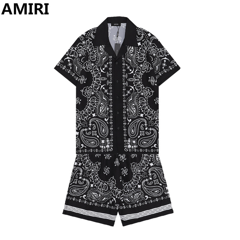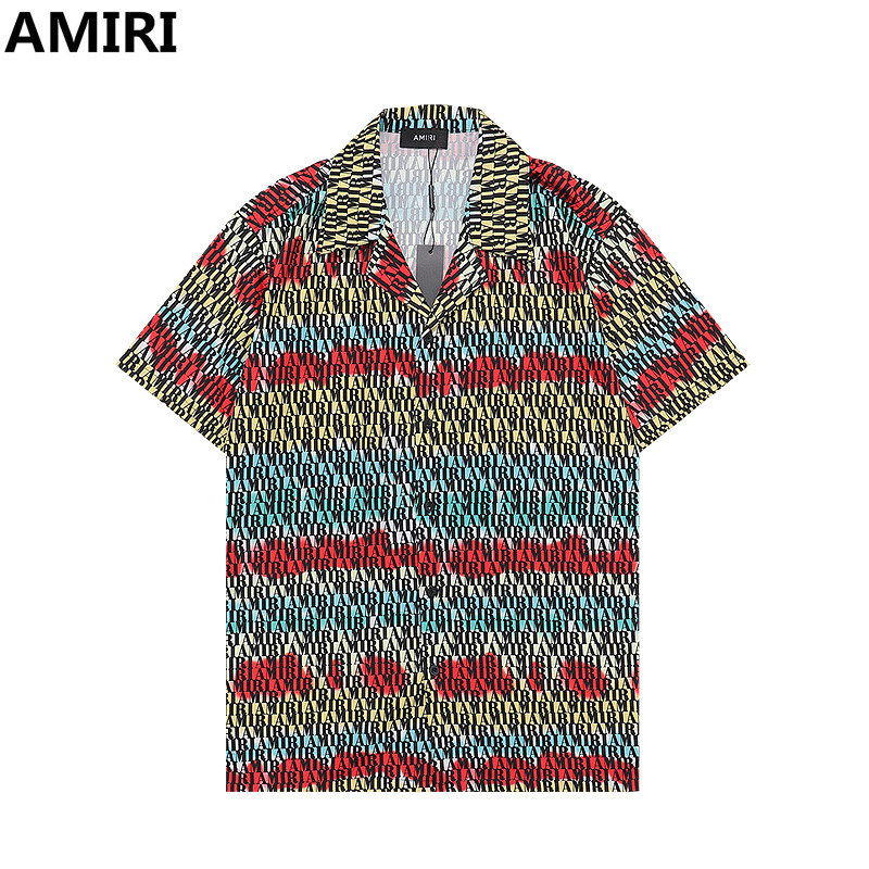 다양한 남성 정장 셔츠 AMIRI 클래식 컬러 블록 프린트 청소년 캐주얼 반팔 셔츠 스포츠 슈트