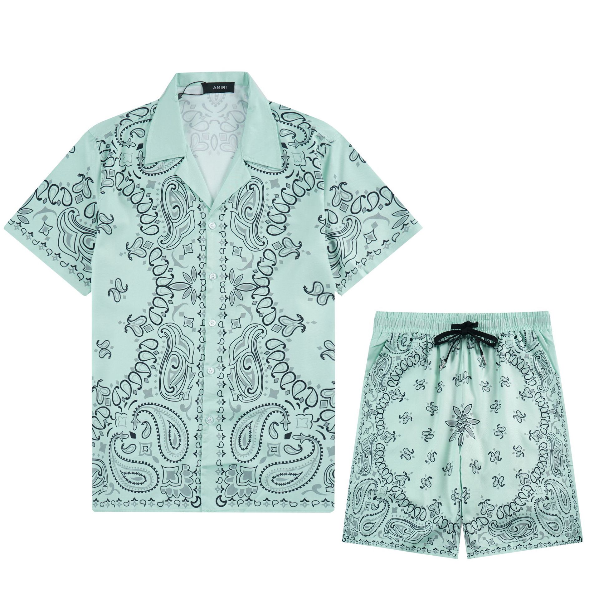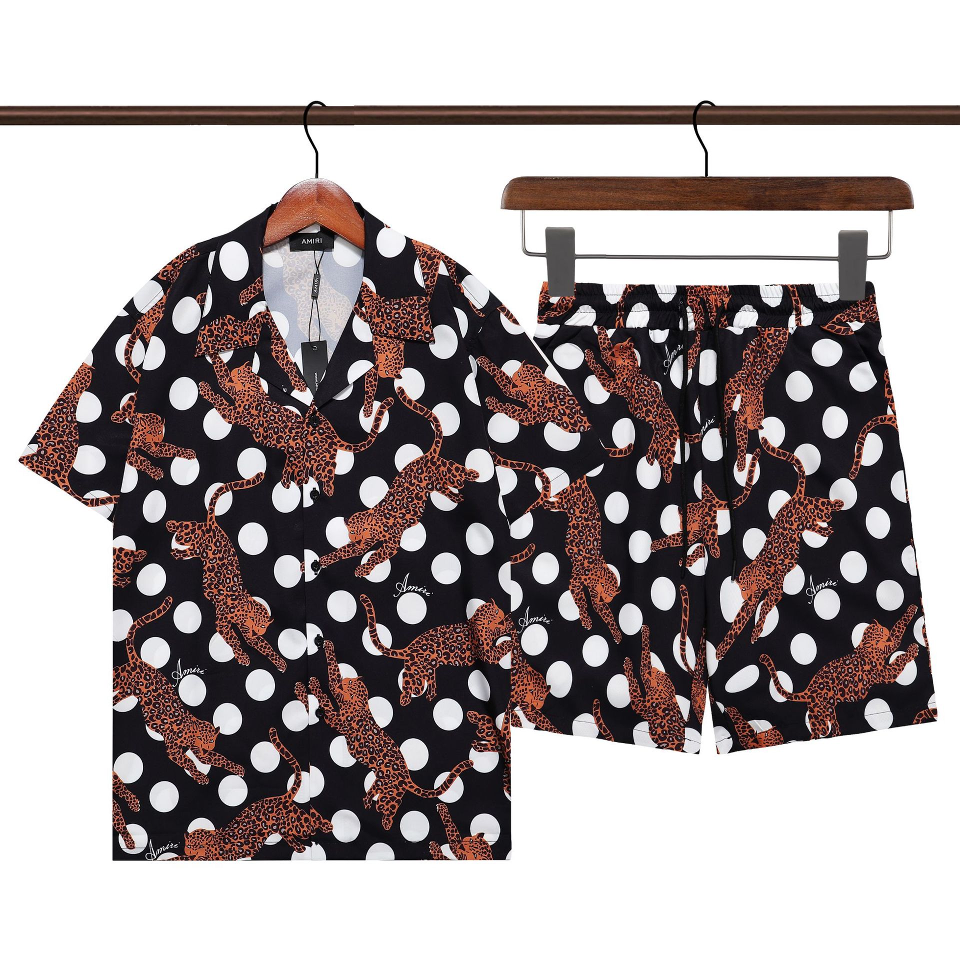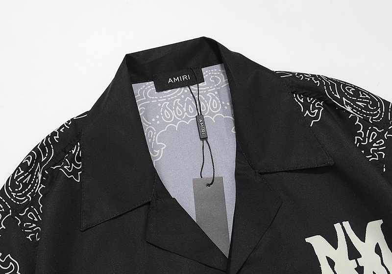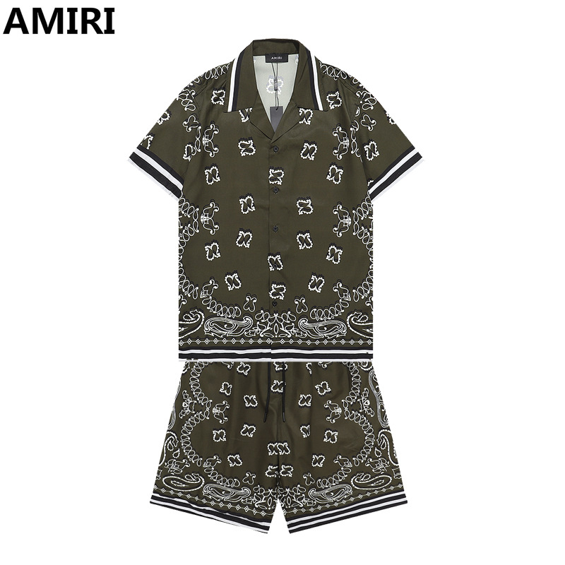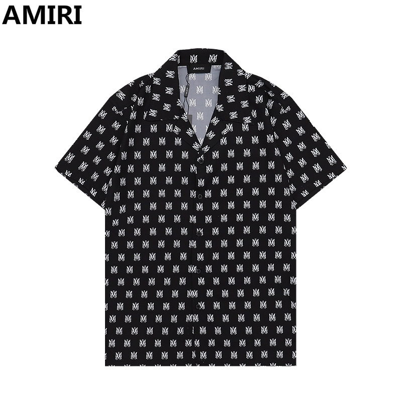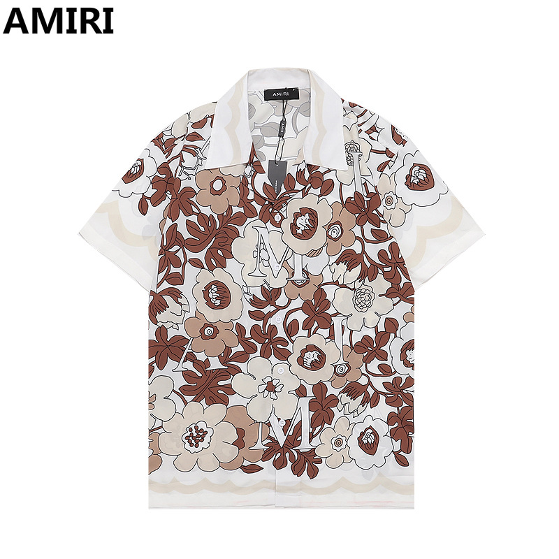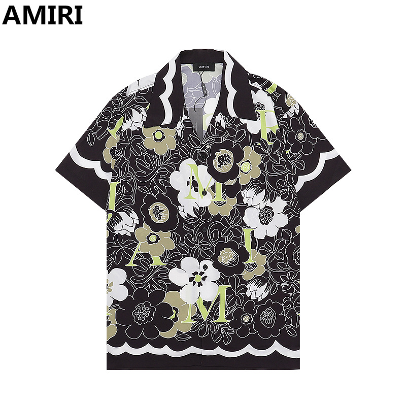 다양한 남성 정장 셔츠 AMIRI 클래식 컬러 블록 프린트 청소년 캐주얼 반팔 셔츠 스포츠 슈트