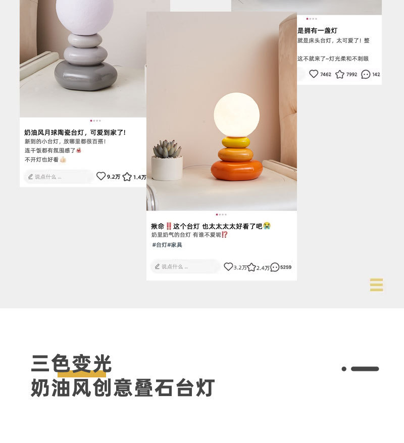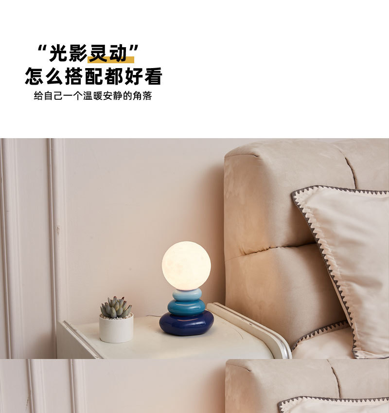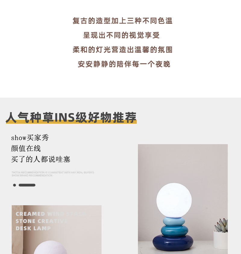 크로스보더 인 스타일 세라믹 야간 조명 북유럽 스타일 개인화된 무음 스타일 컬러 크림 스타일 고급 스택 스톤 야간 조명스토어 가기