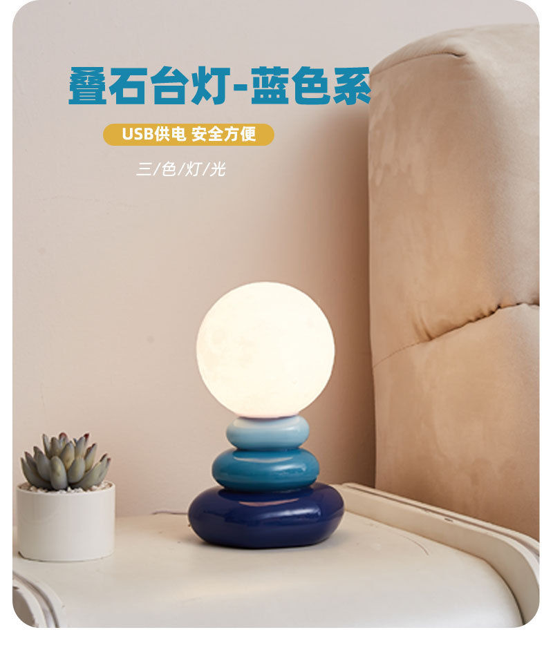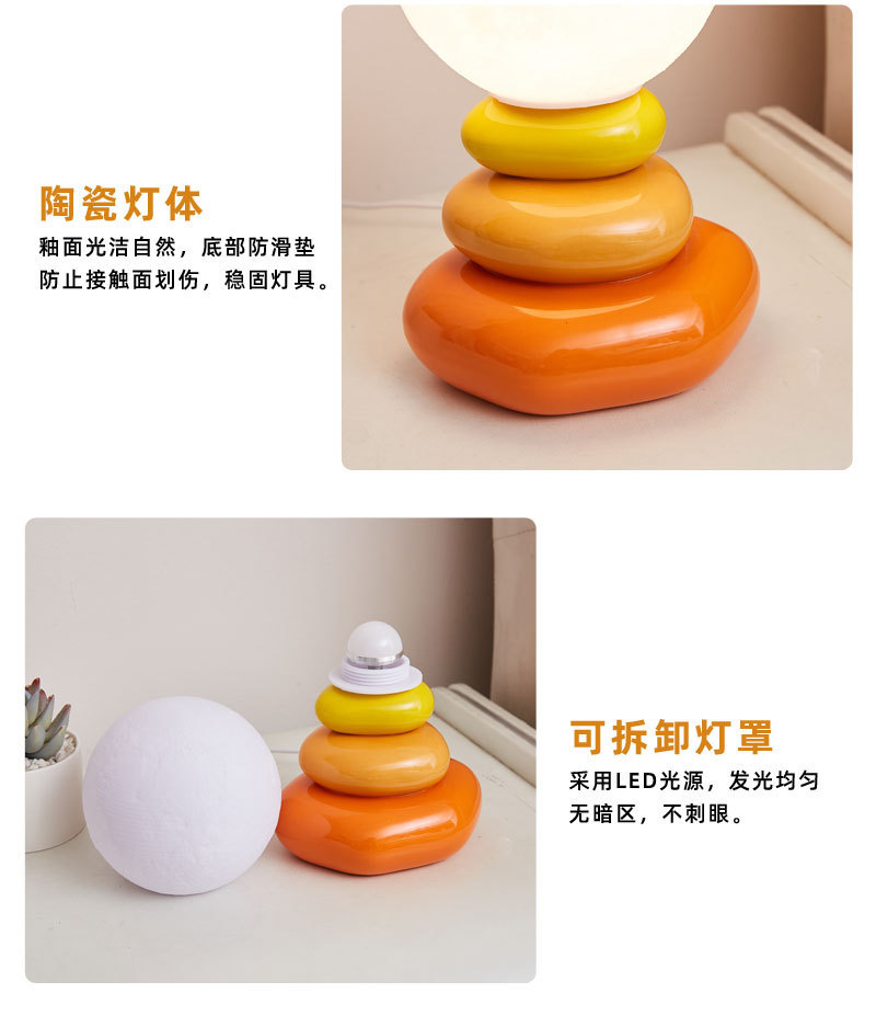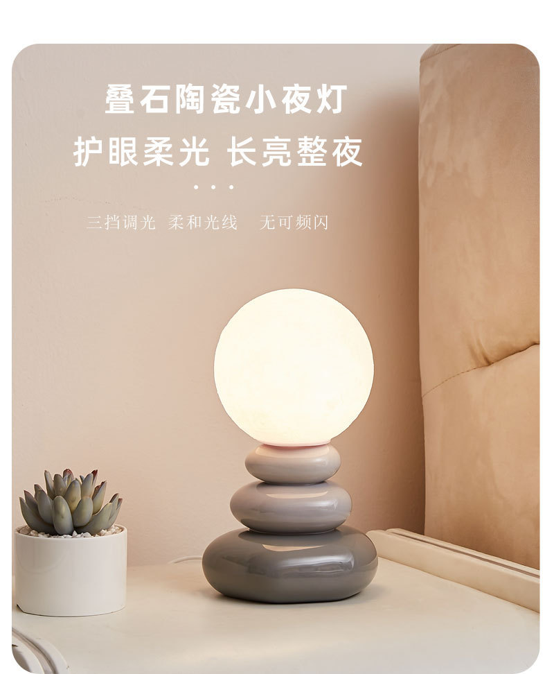 크로스보더 인 스타일 세라믹 야간 조명 북유럽 스타일 개인화된 무음 스타일 컬러 크림 스타일 고급 스택 스톤 야간 조명