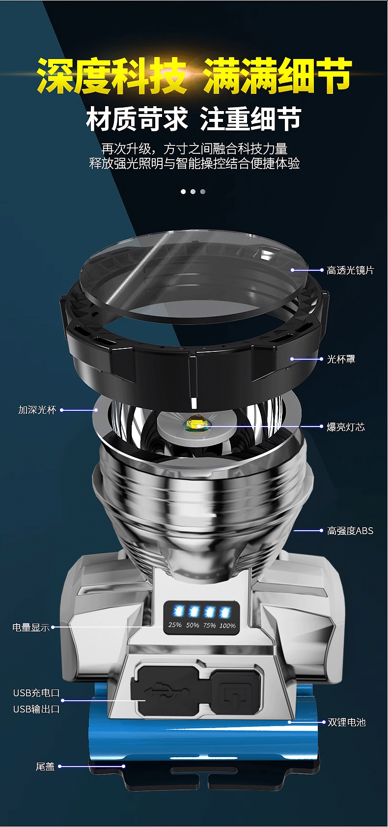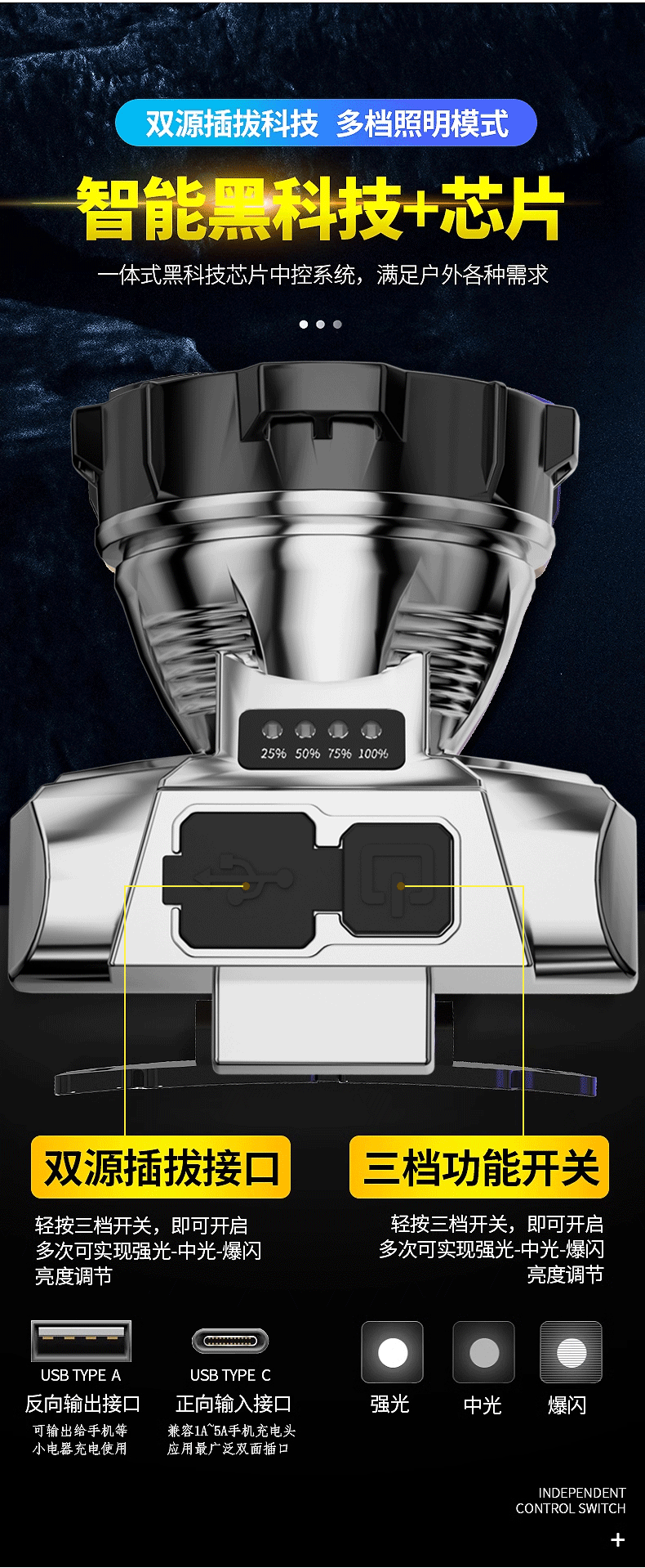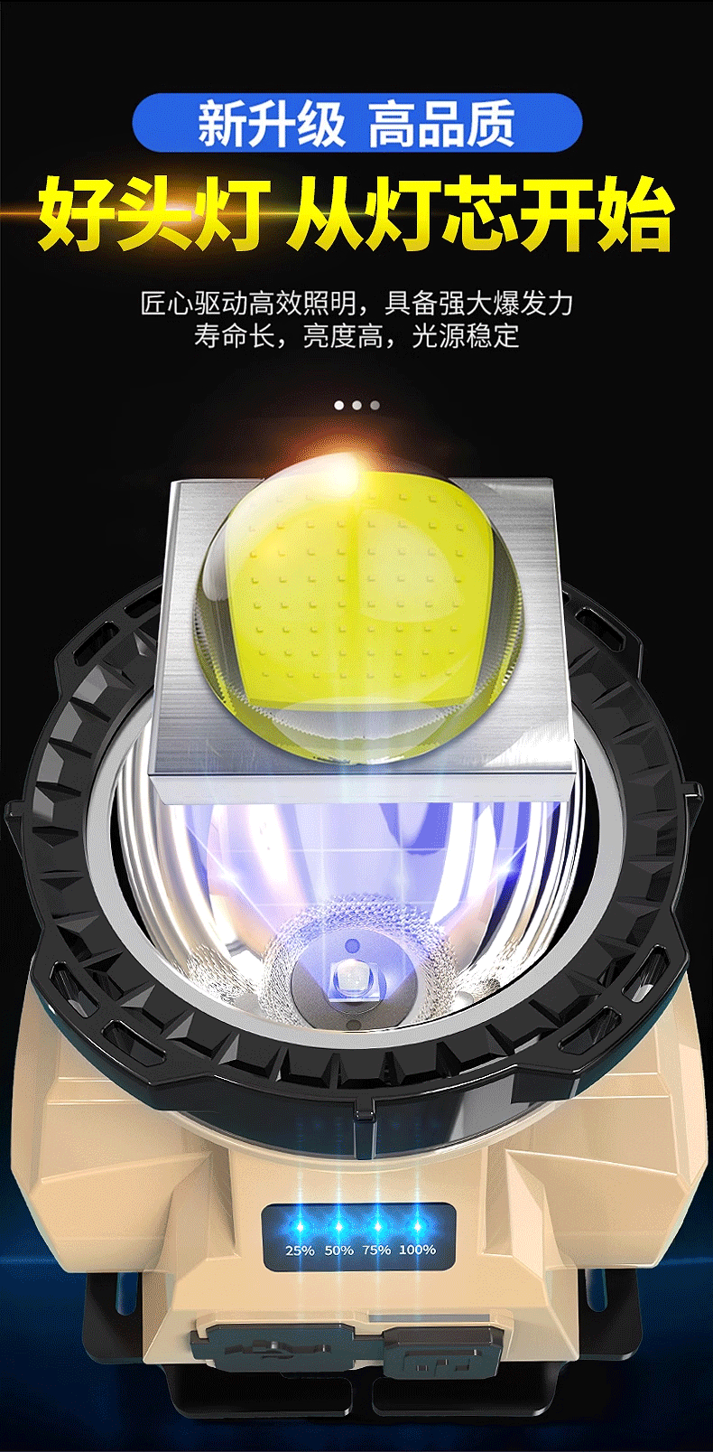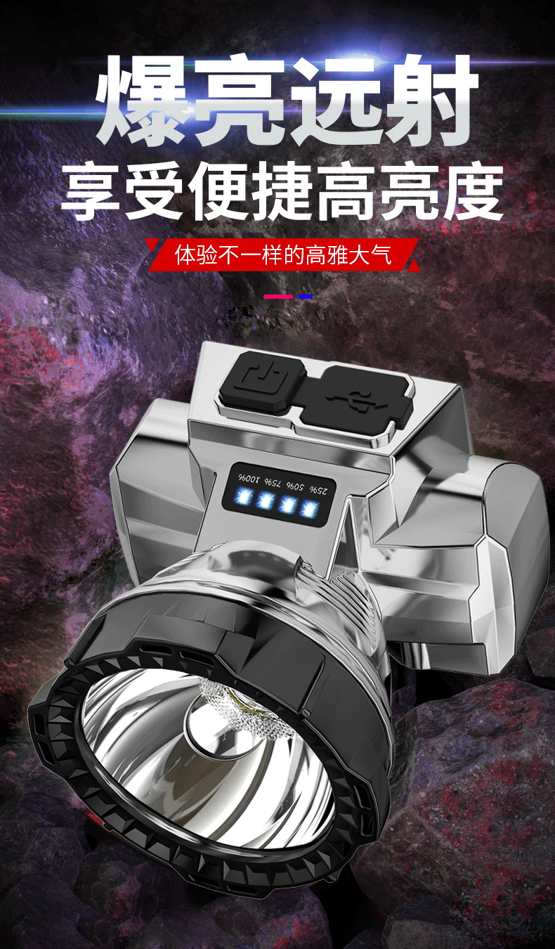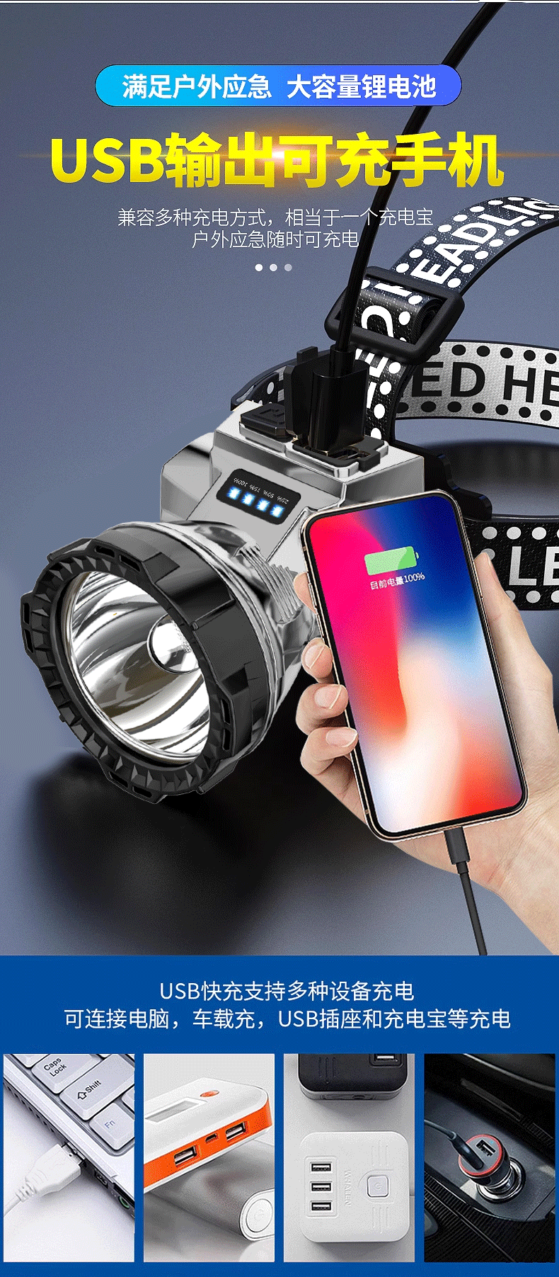 신LED 강광 전조등 더블 리튬 휴대용 헤드 램프 야외 장거리 야간 낚시 광부 램프 작업 전조등 도매