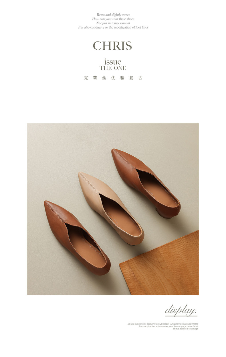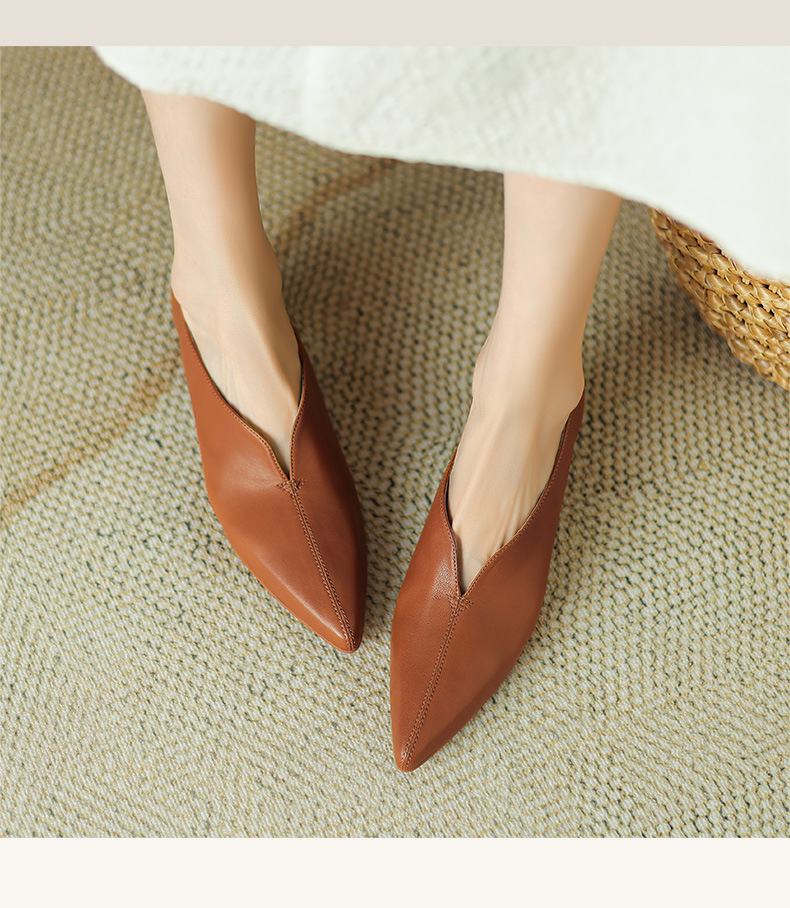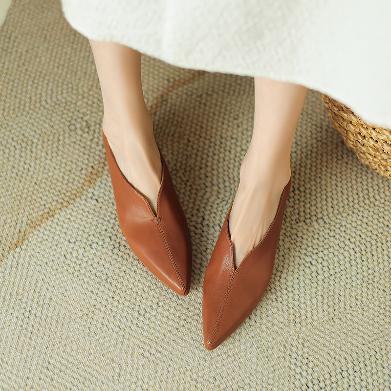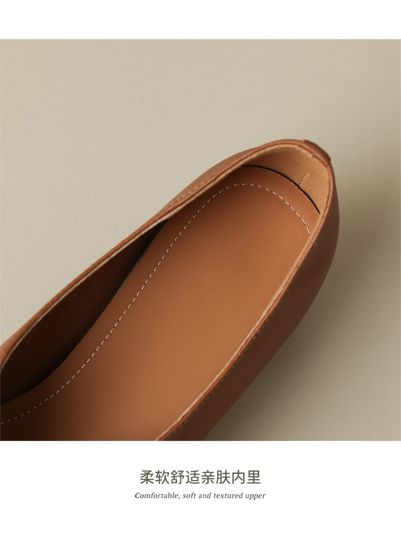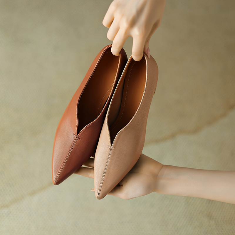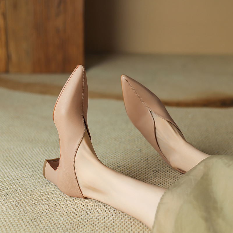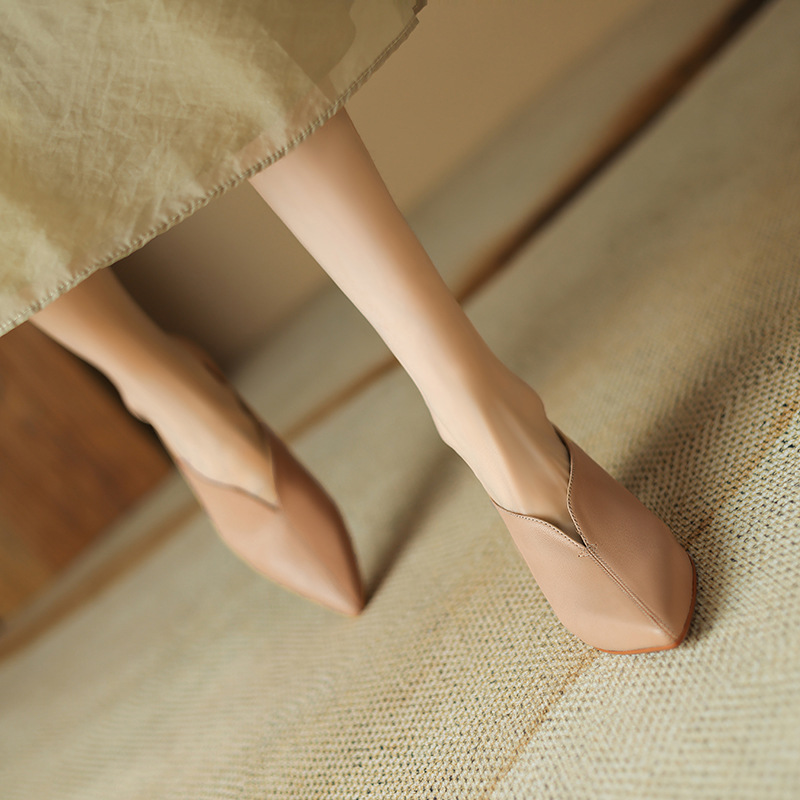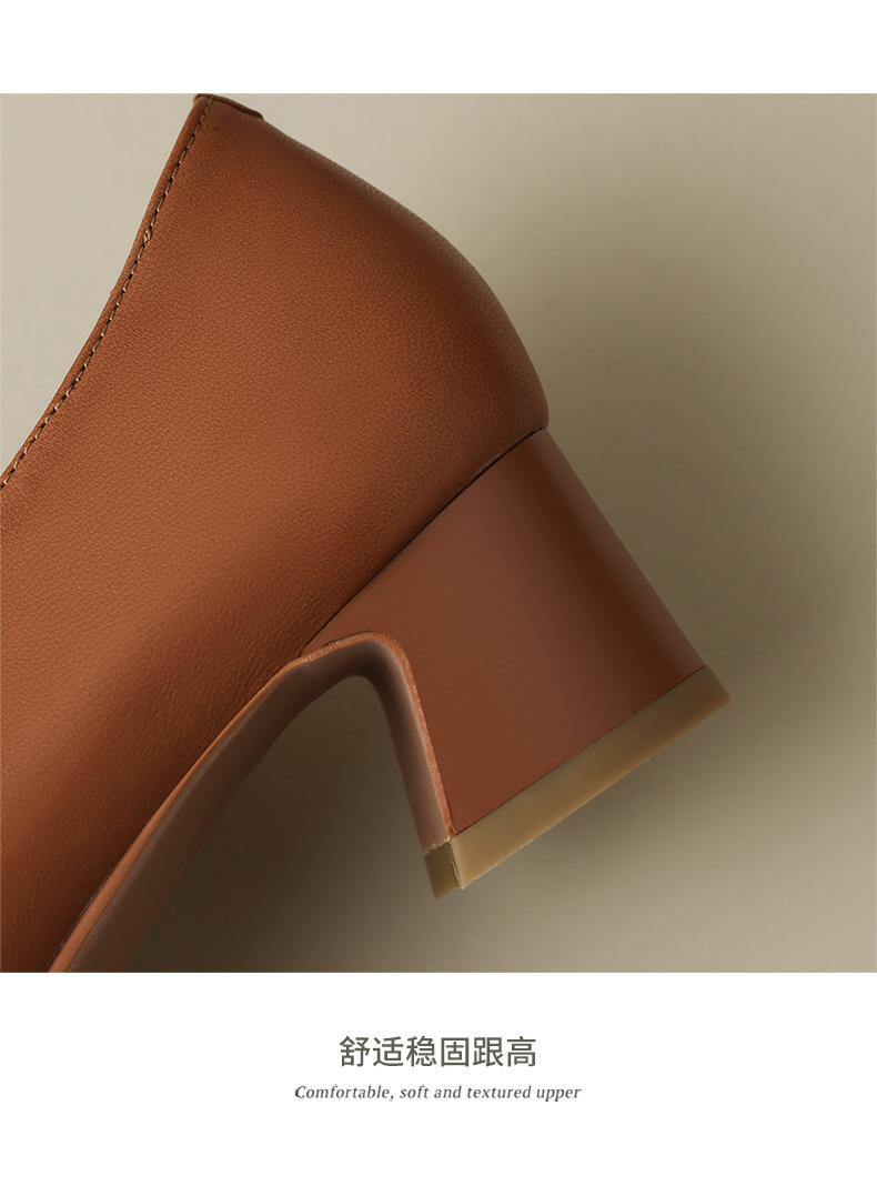 심플 콜드 스타일 레트로 밀크 슈즈 풀 가죽 2023 가을 새로운 두꺼운 뒤꿈치 뾰족한 V 입 양피 신발 여성스토어 가기