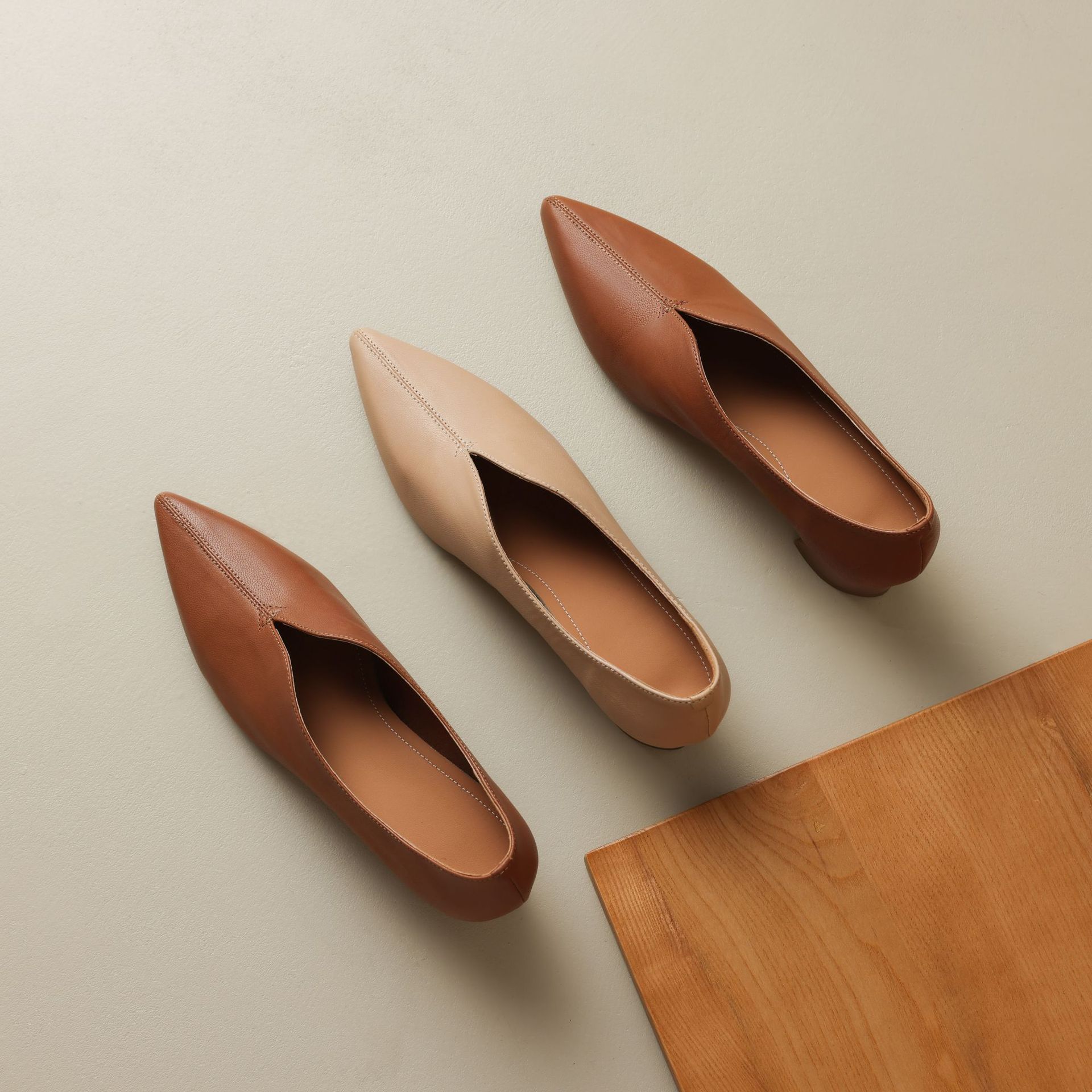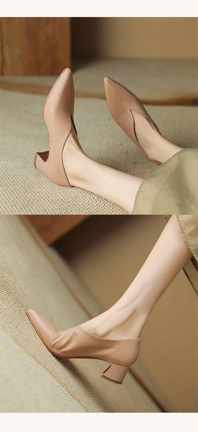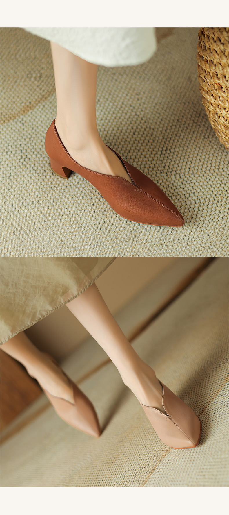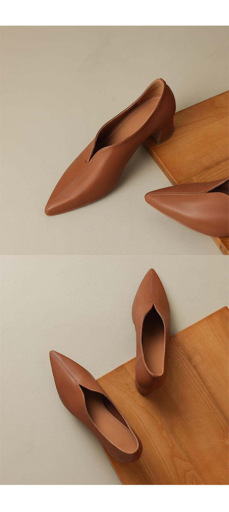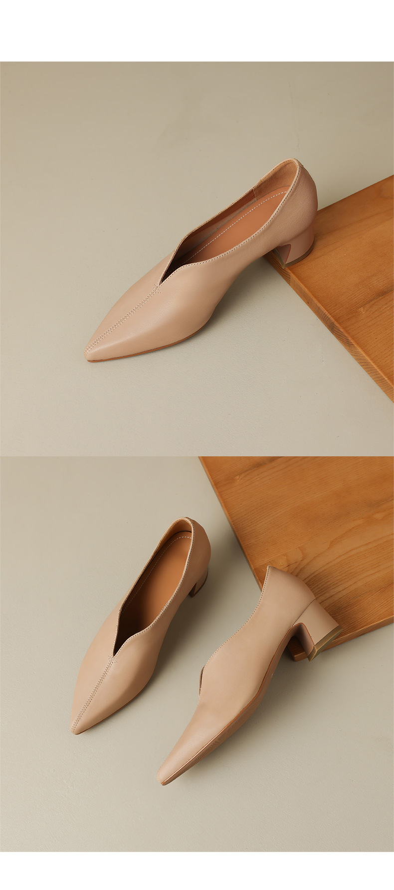 심플 콜드 스타일 레트로 밀크 슈즈 풀 가죽 2023 가을 새로운 두꺼운 뒤꿈치 뾰족한 V 입 양피 신발 여성스토어 가기