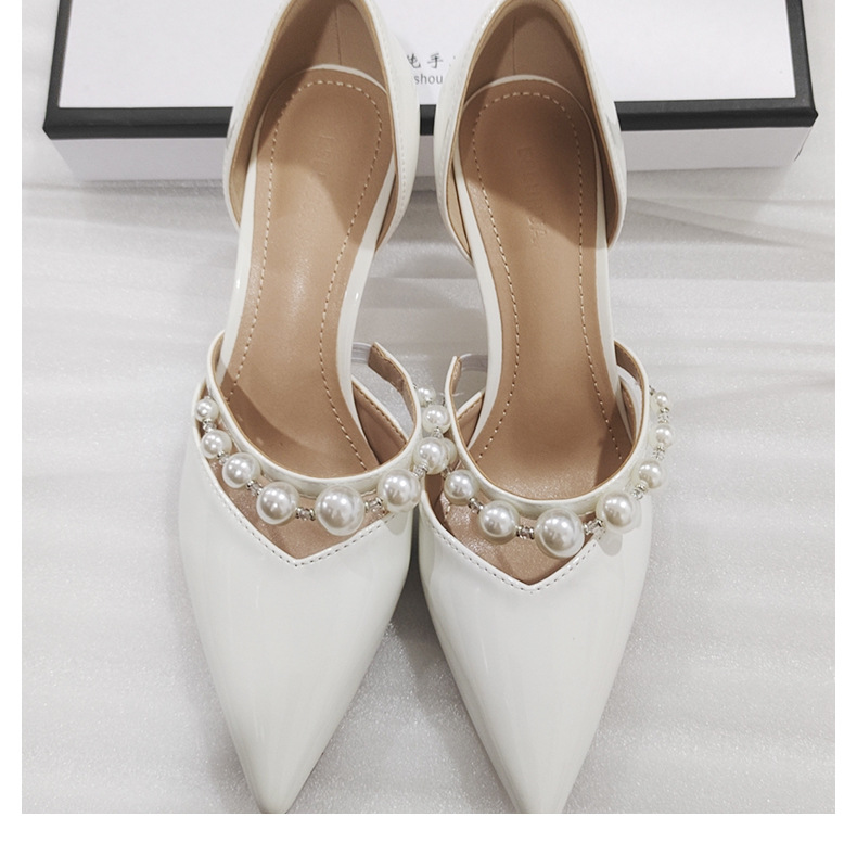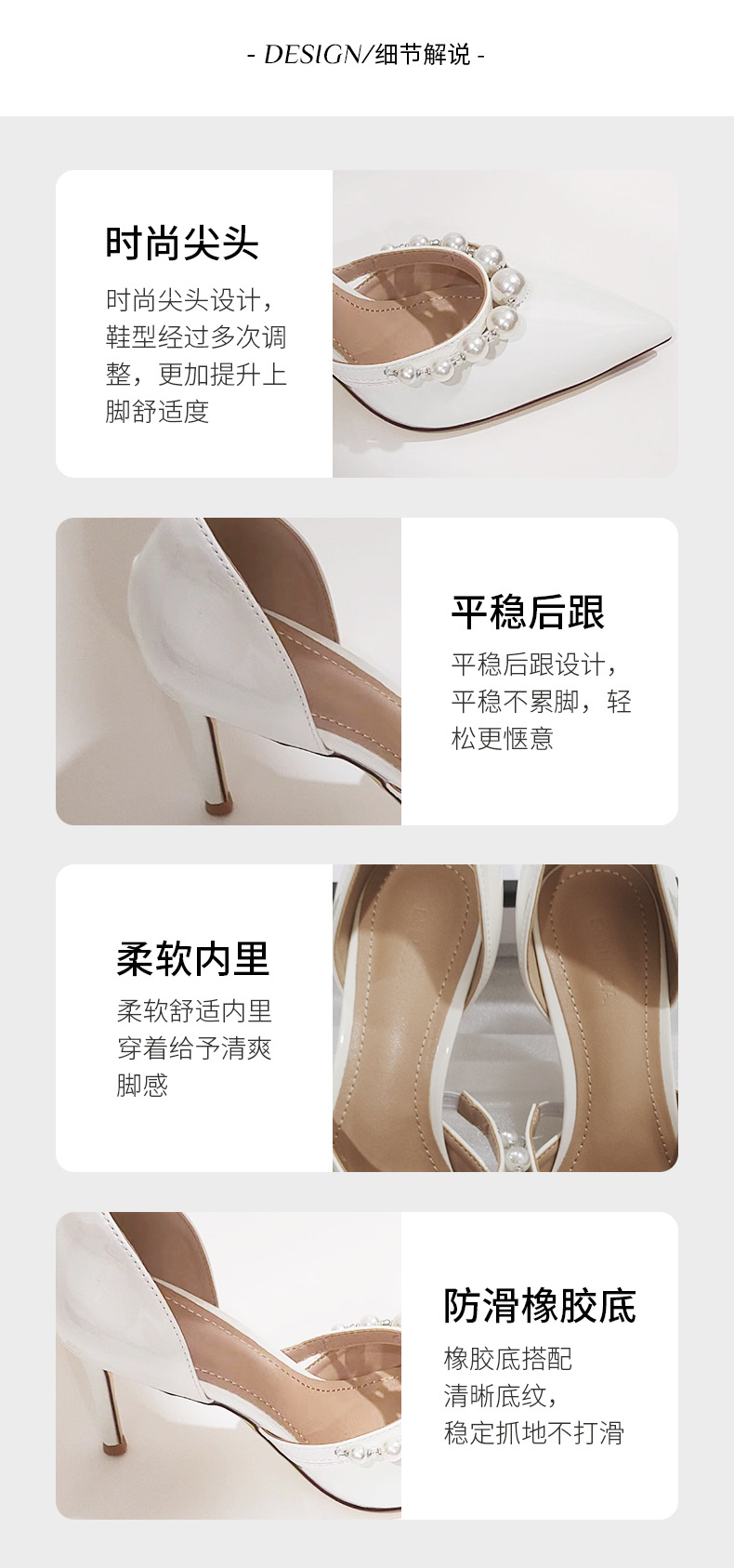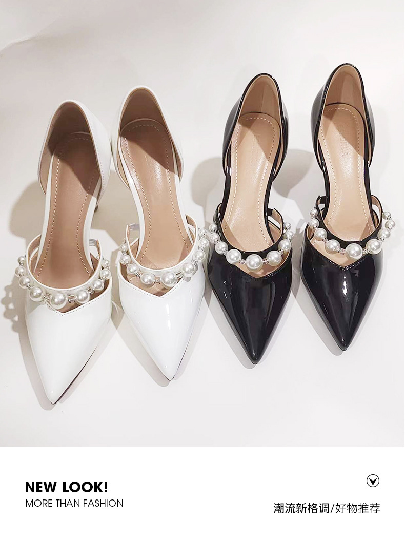 도매 특허 가죽 진주 스트랩 하이힐 프렌치 중공 스틸레토 힐 신발 뾰족한 진주 스트랩 랩 발가락 하이힐
