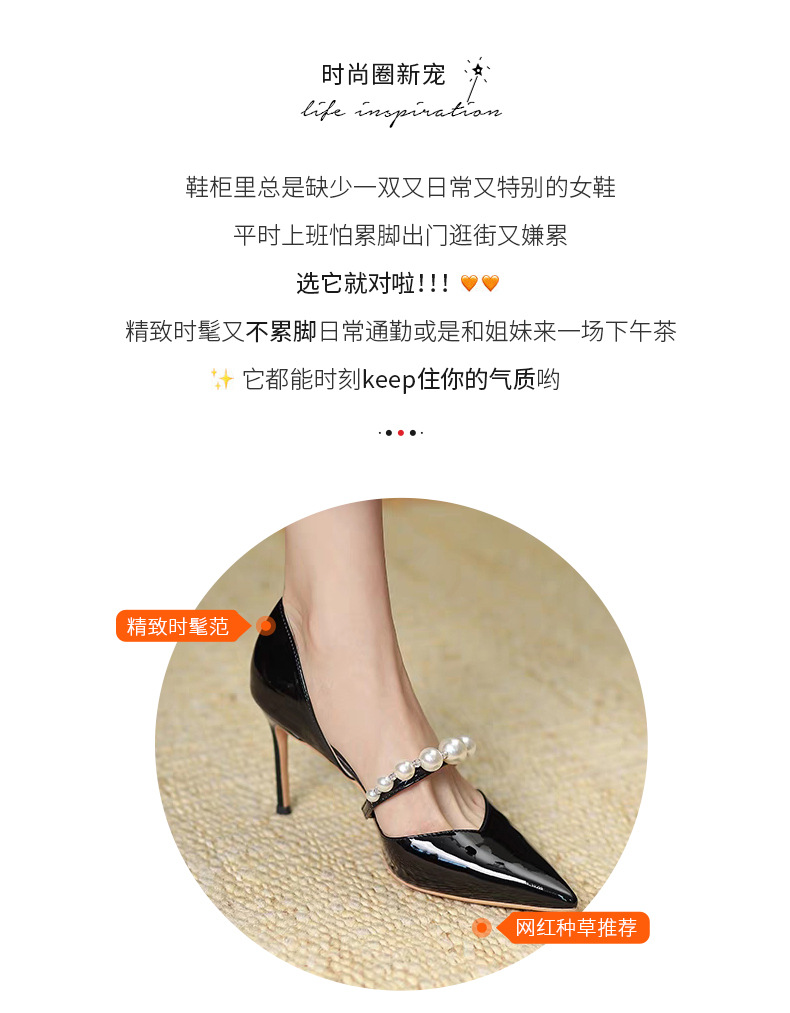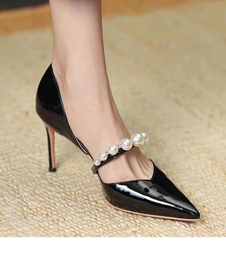 도매 특허 가죽 진주 스트랩 하이힐 프렌치 중공 스틸레토 힐 신발 뾰족한 진주 스트랩 랩 발가락 하이힐스토어 가기