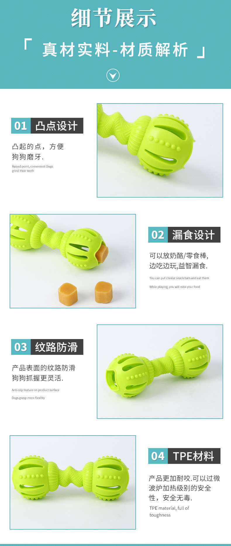 새로운 누출 음식 장난감 개 물린 방지 누출 음식 덤벨 훈련 어금니 중소 개 애완 동물 장난감스토어 가기