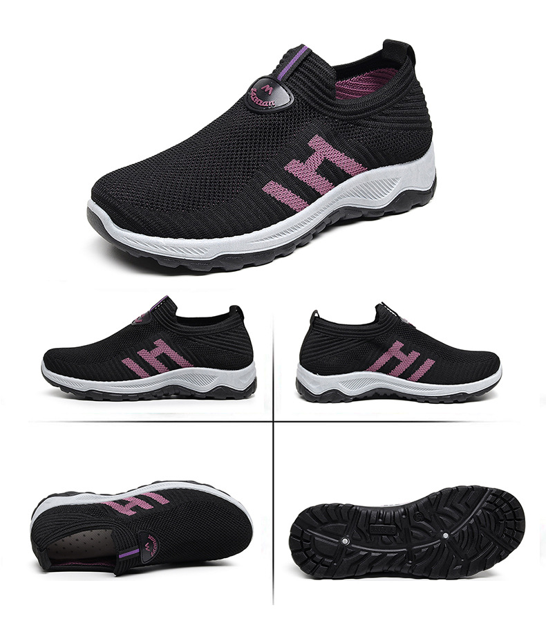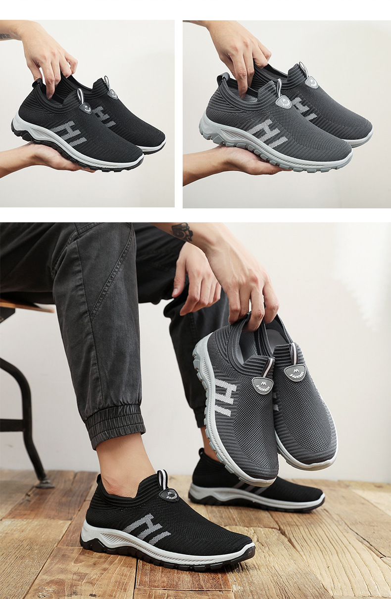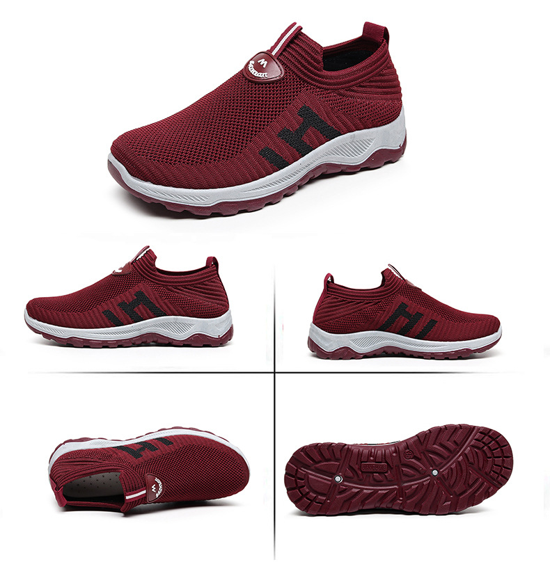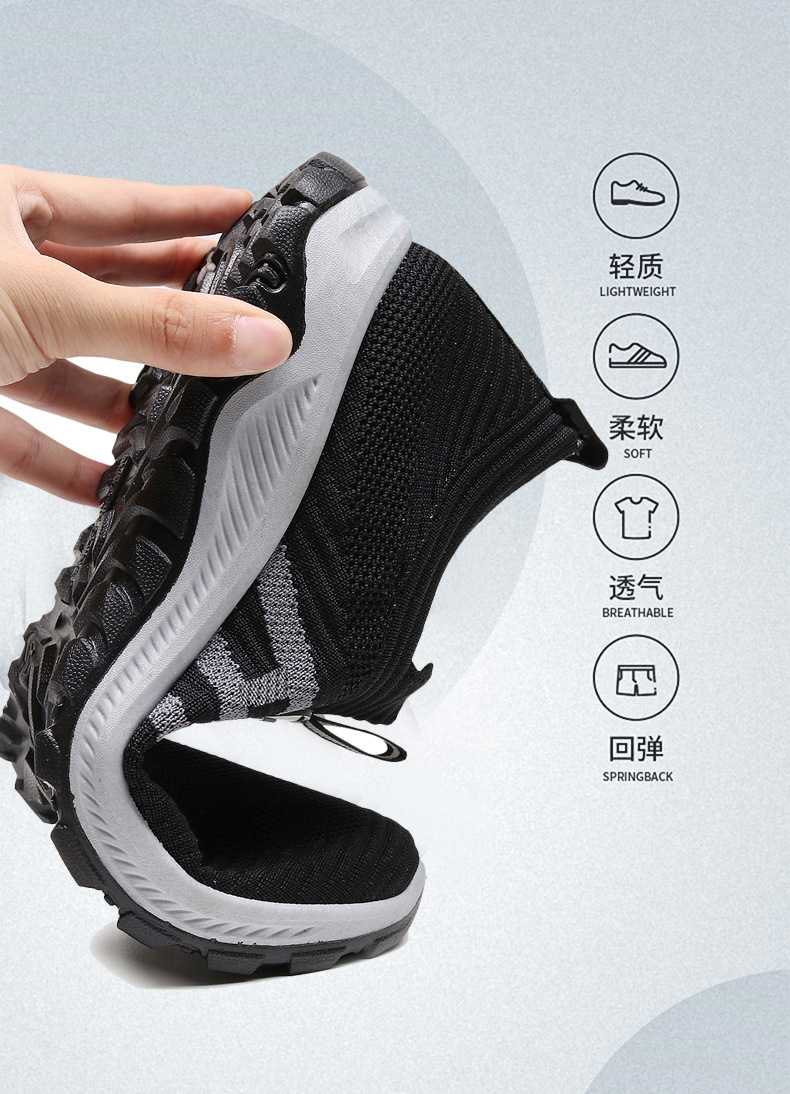 여름 뉴 운동화 남성과 여성의 로우 탑 양말 신발 플라이 짠 등산 신발 슬립 온 아빠 신발