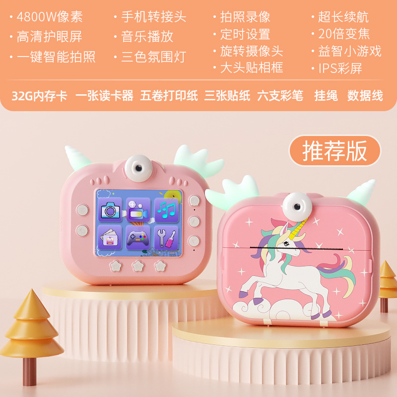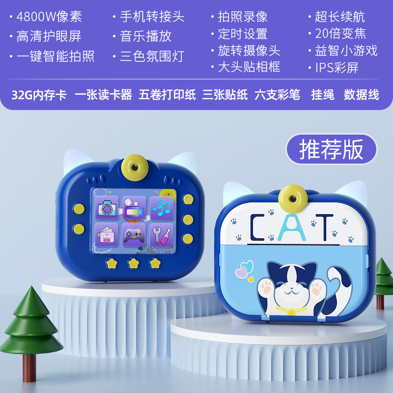 产品配置:相机、说明书、USB线、挂绳、热敏打印纸5卷 彩笔6只 读卡器 三张动漫贴纸