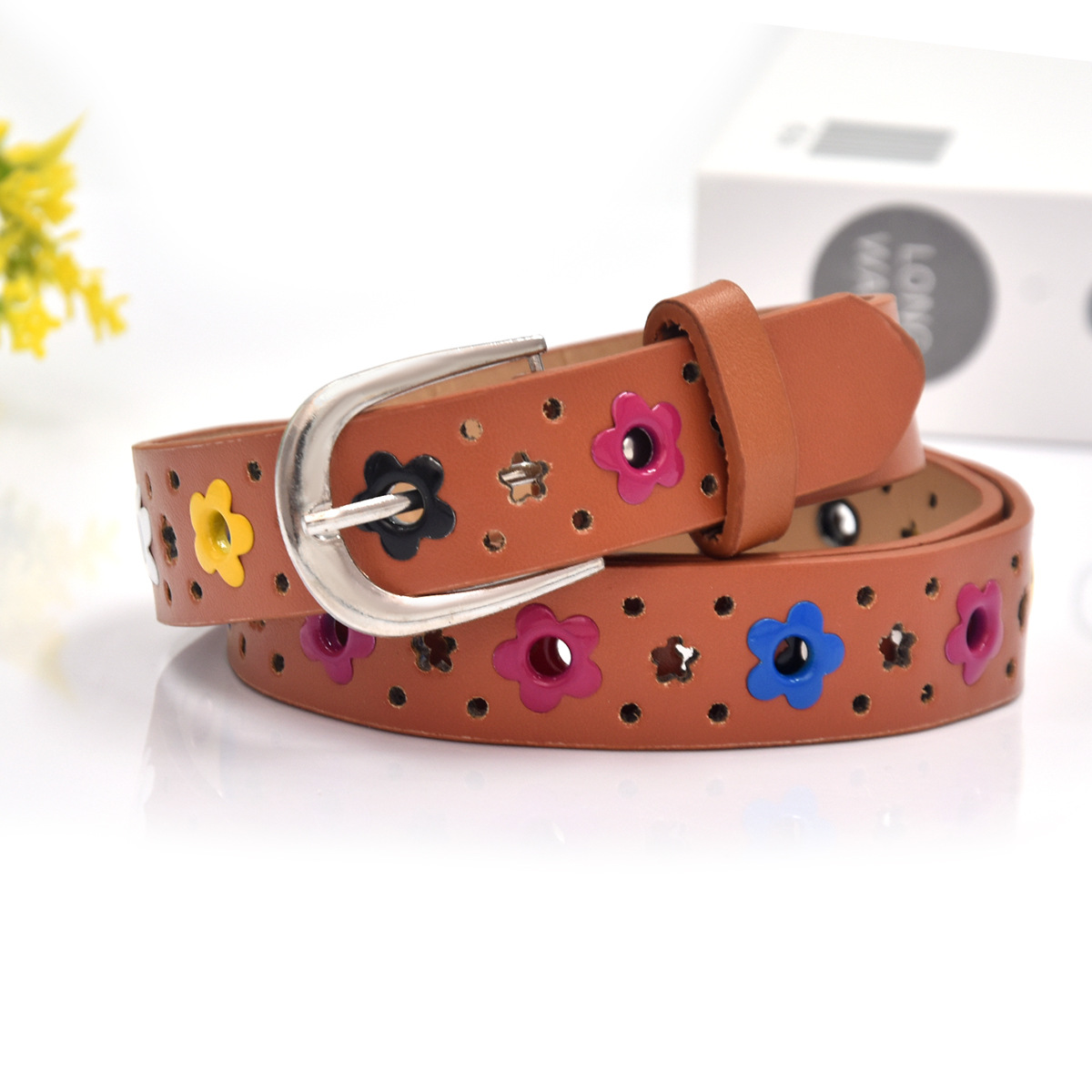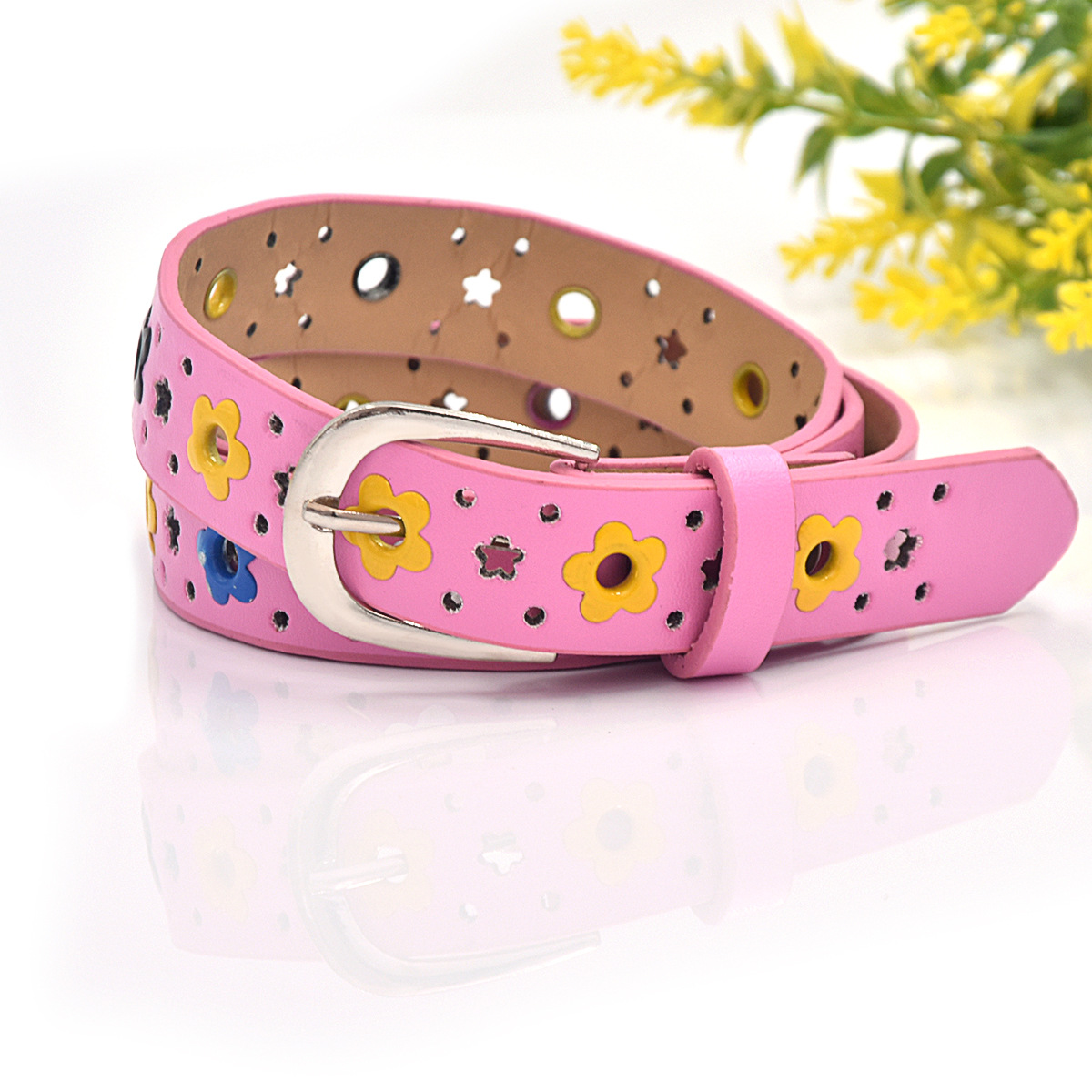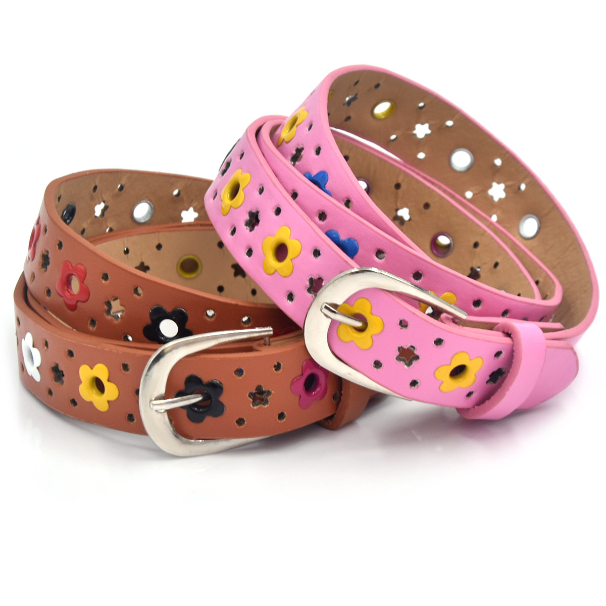 크로스 보더 여성 벨트 새로운 어린이 벨트 한국 꽃 나비 중공 어린이 캐주얼 핀 버클 벨트