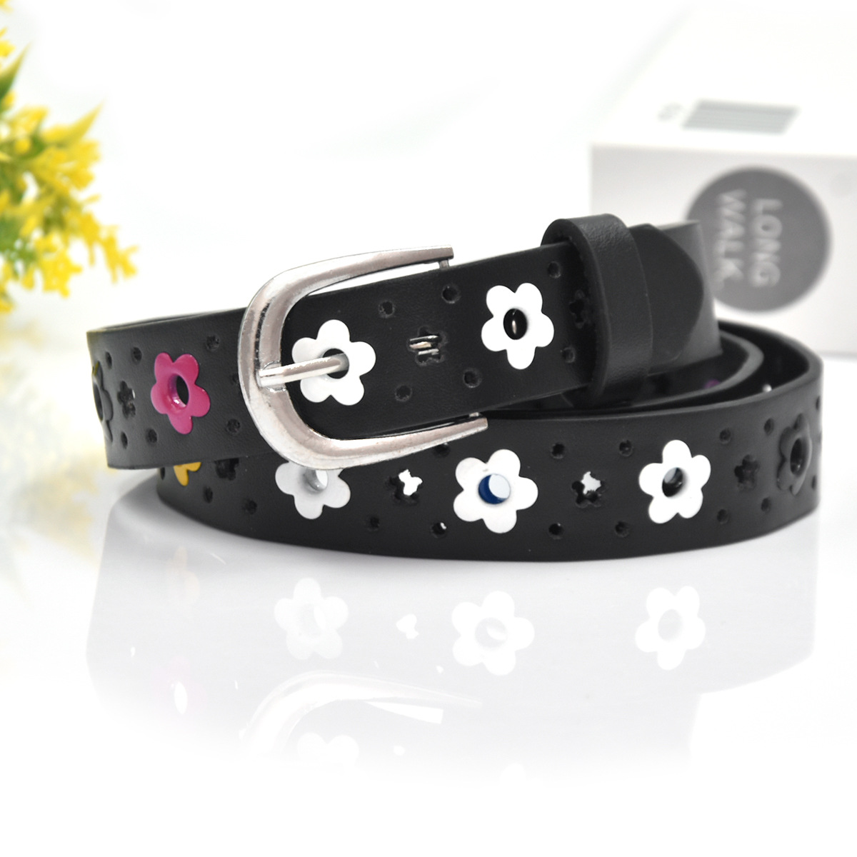 크로스 보더 여성 벨트 새로운 어린이 벨트 한국 꽃 나비 중공 어린이 캐주얼 핀 버클 벨트스토어 가기