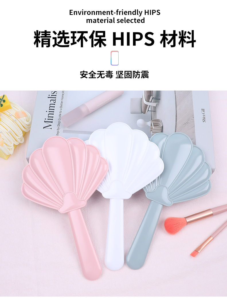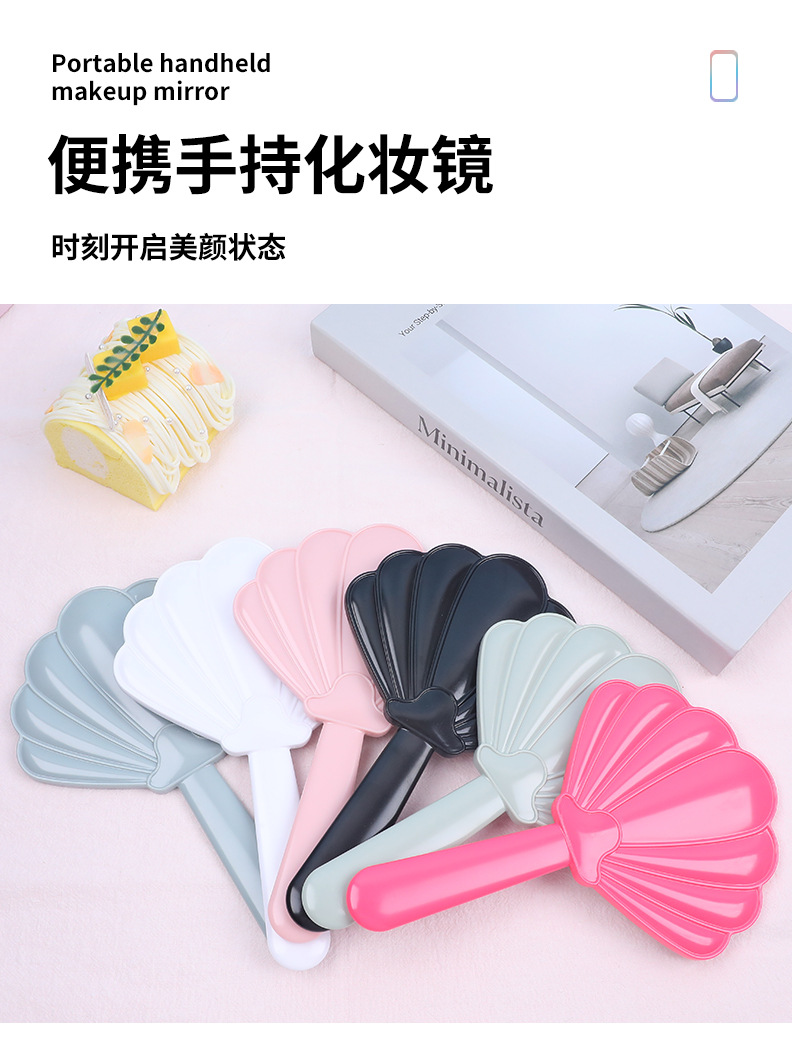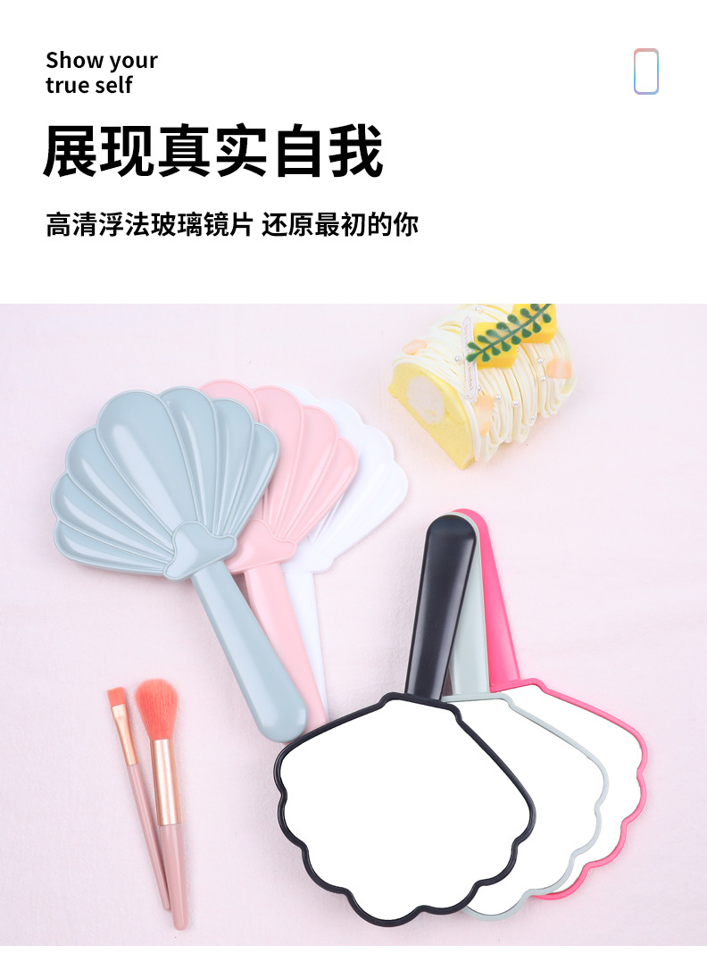 새로운 창의적인 조개 모양 화장 거울 플라스틱 손거울 고급스러운 디자인 인쇄 가능한 로고 소형 휴대용 거울