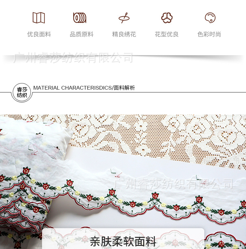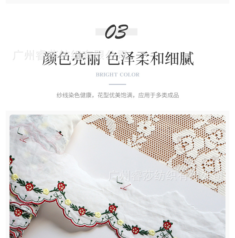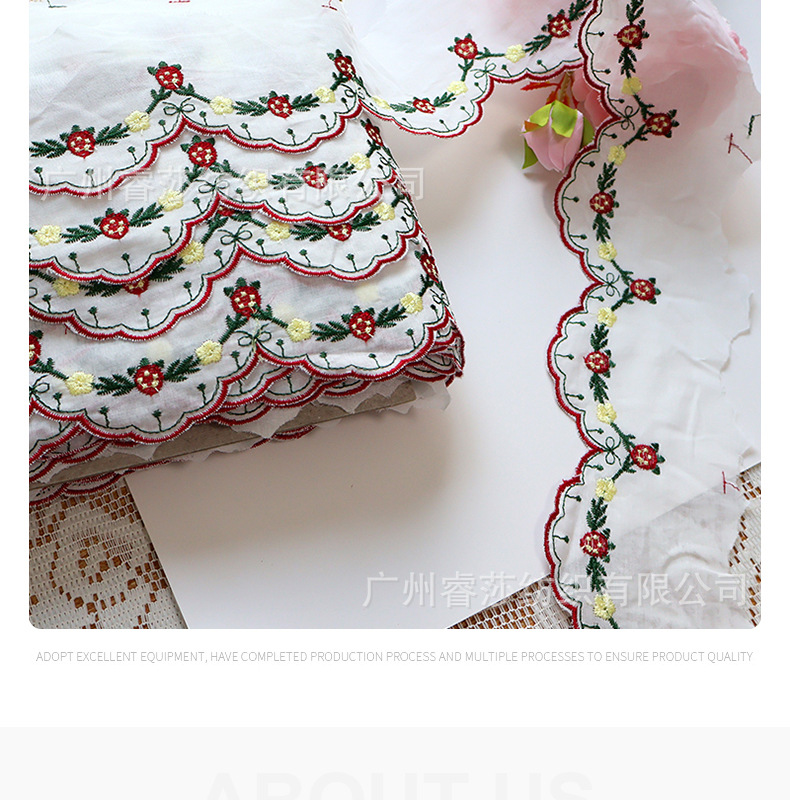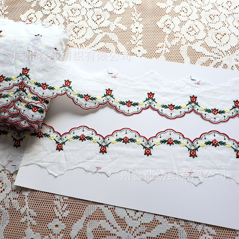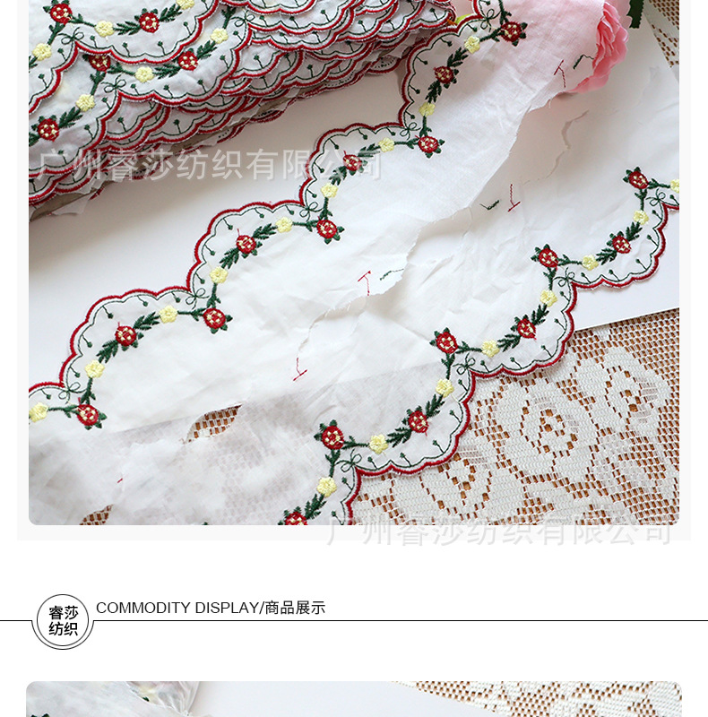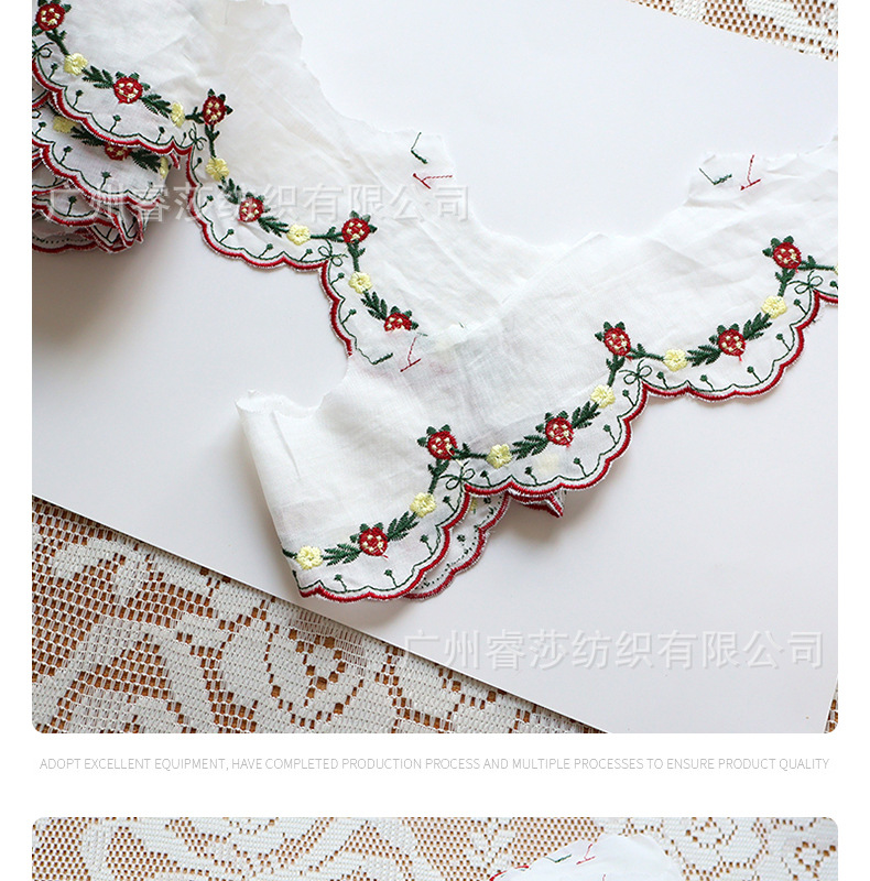 공장 재고 딸기 자수 면 레이스 장식 아동복 로리타 칼라 꽃무늬 스커트 칼라 레이스 원단