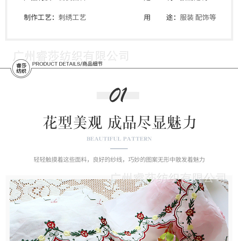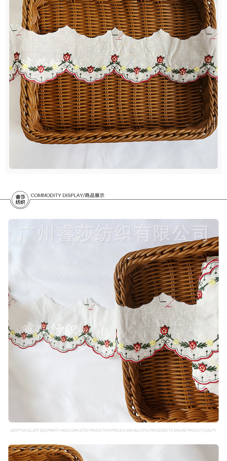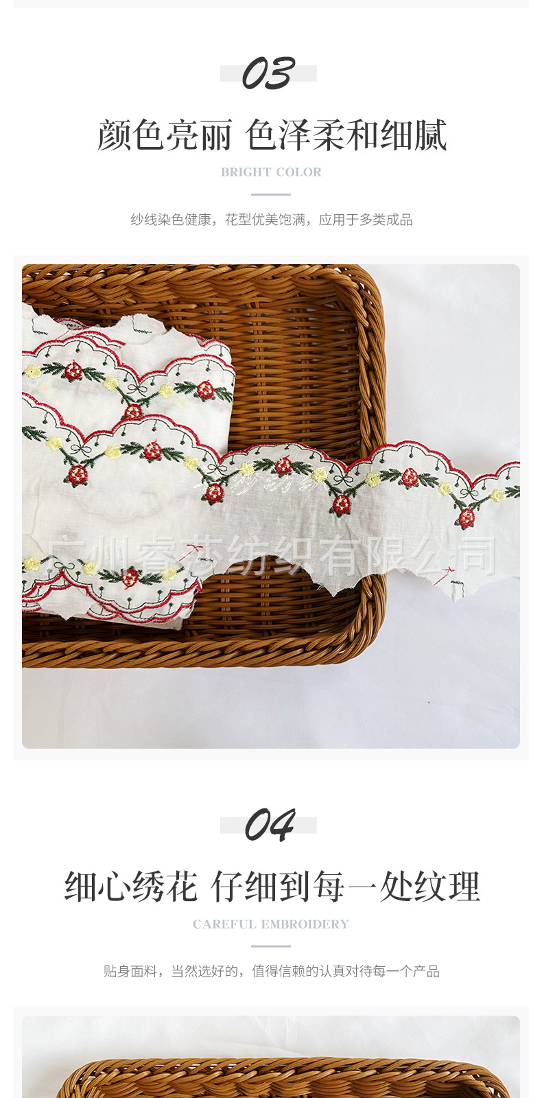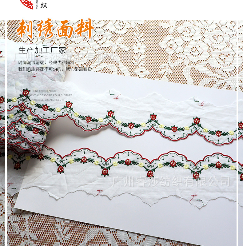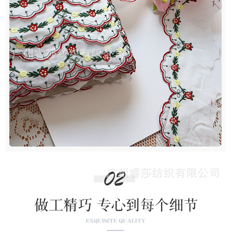 공장 재고 딸기 자수 면 레이스 장식 아동복 로리타 칼라 꽃무늬 스커트 칼라 레이스 원단