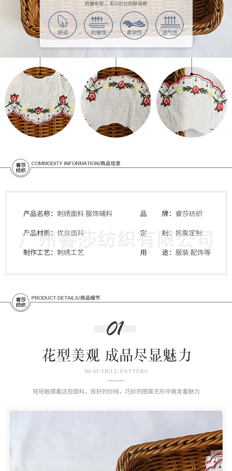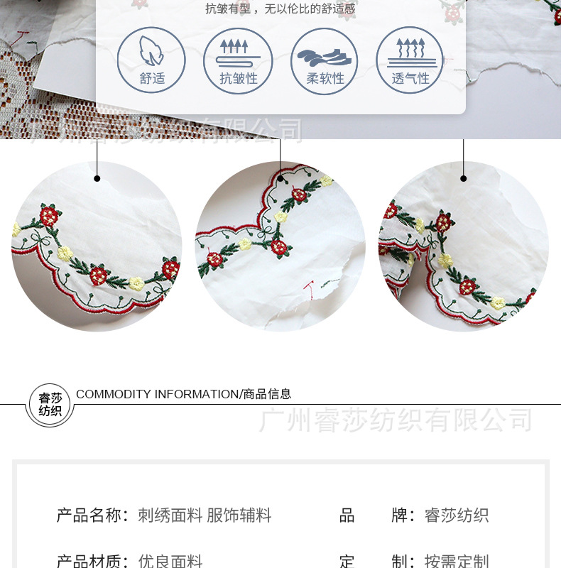 공장 재고 딸기 자수 면 레이스 장식 아동복 로리타 칼라 꽃무늬 스커트 칼라 레이스 원단스토어 가기