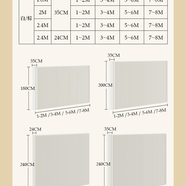 • 높이 180 폭 35 길이 300-400cm 흰색 [늘리고 접기 쉬움]