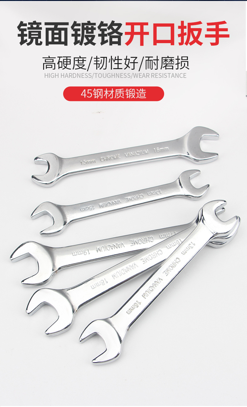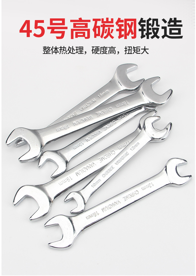 거울 45 # 스틸 크롬 도금 더블 오픈 엔드 렌치 전체 세트 자동 수리 더블 엔드 렌치 세트 도구 멀티 사양 도매