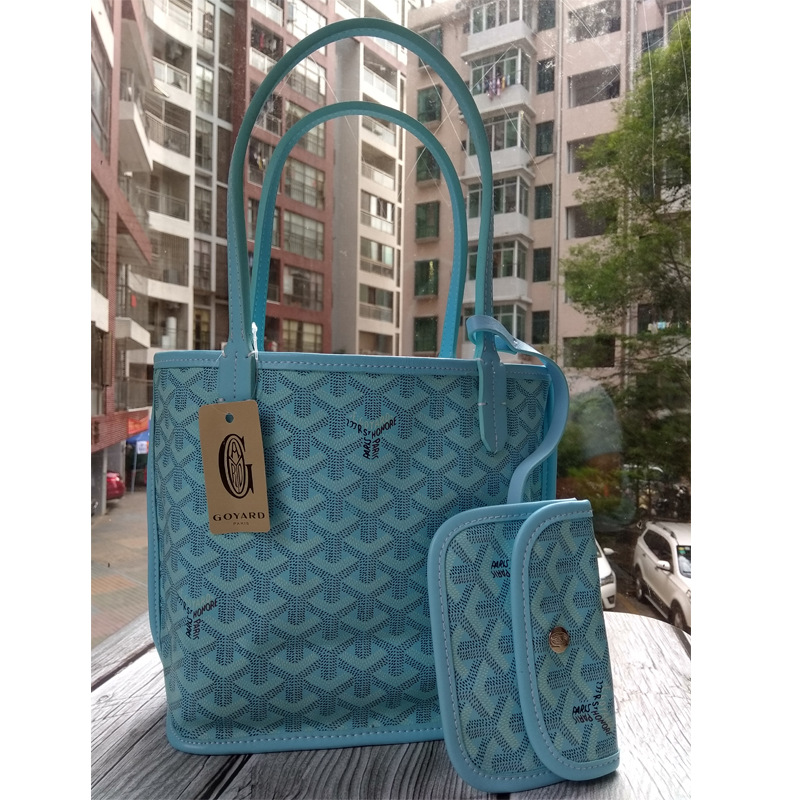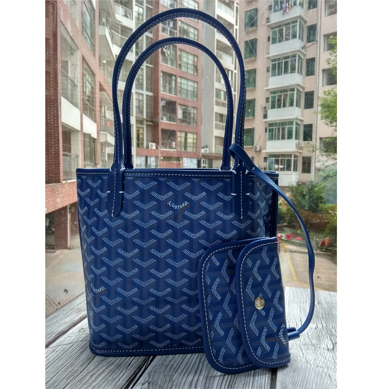 Eloyd 휴대용 숄더 미니 토트백 양면 사용 가능한 가방 고야 정품 가죽 야채 블루와 같은 스타일