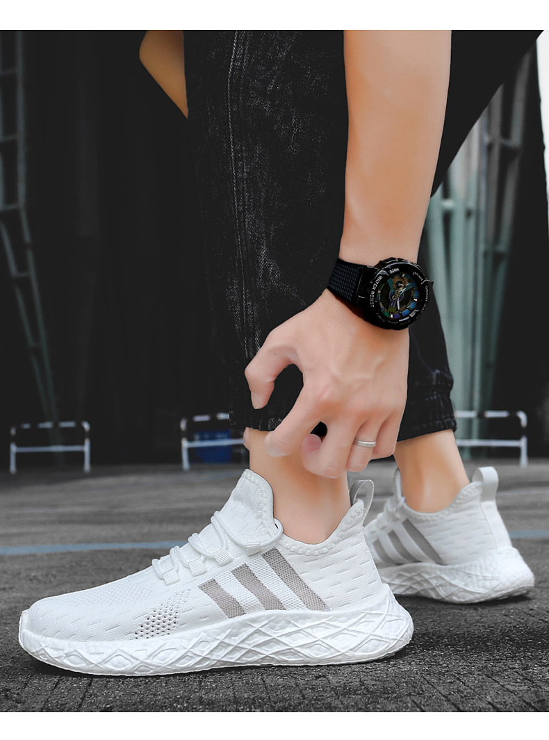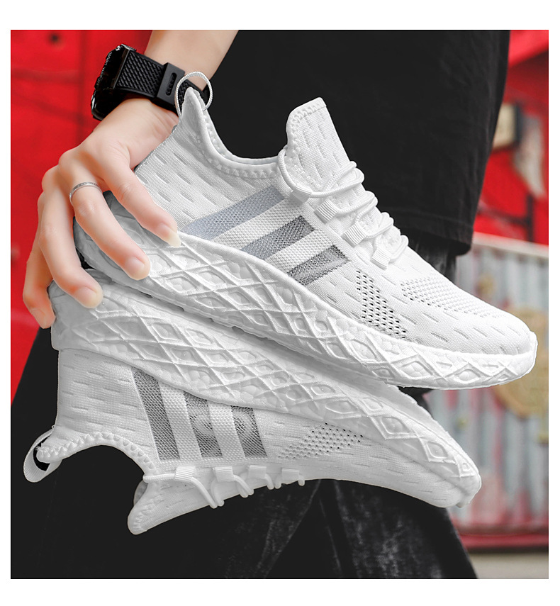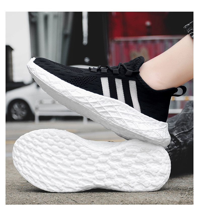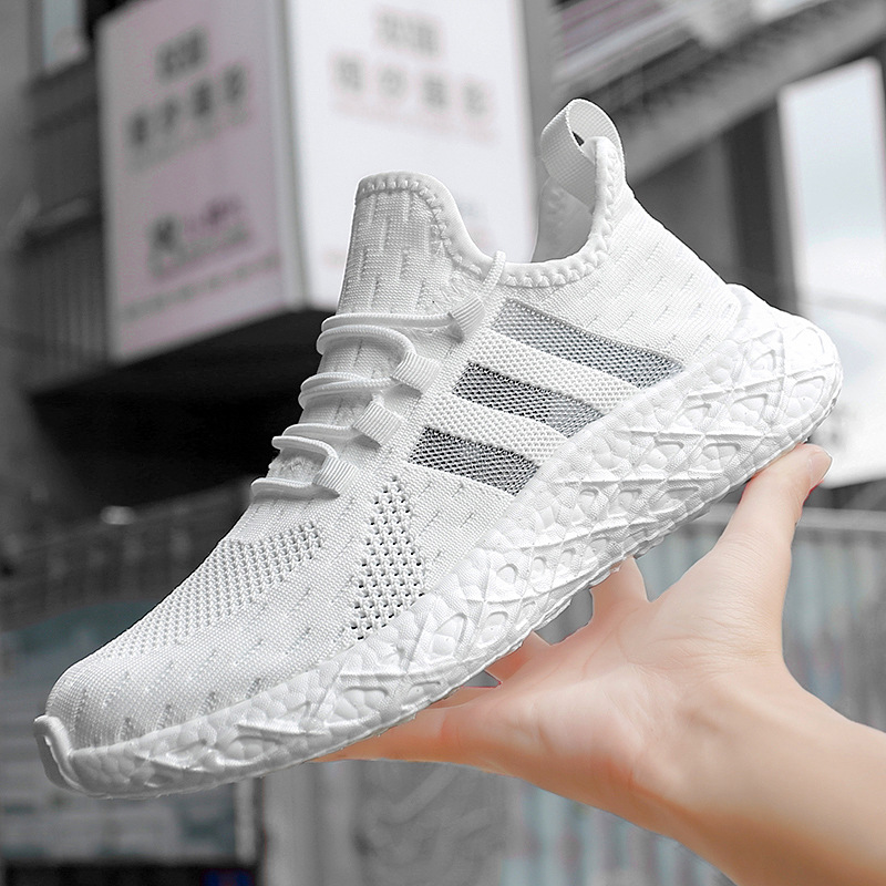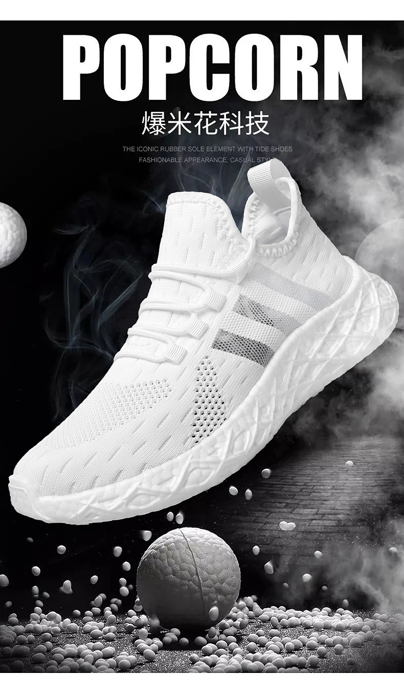 크로스 보더 고탄성 팝콘 새로운 운동화 남성용 부드러운 밑창 플라이-짠 메쉬 운동화 남성과 여성의 경량 남성 신발