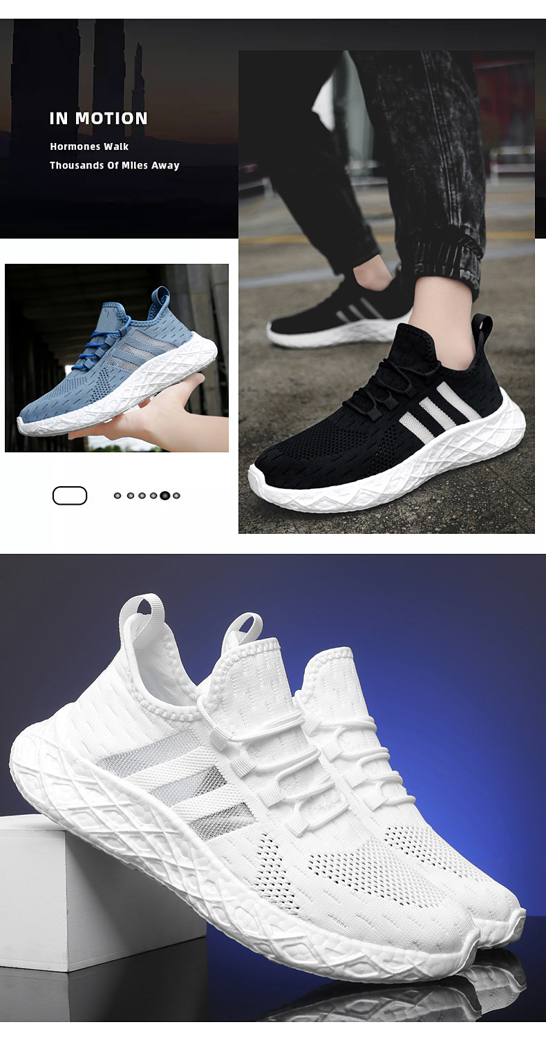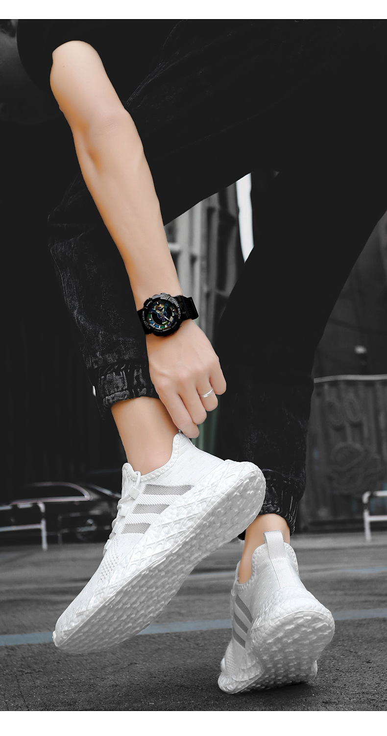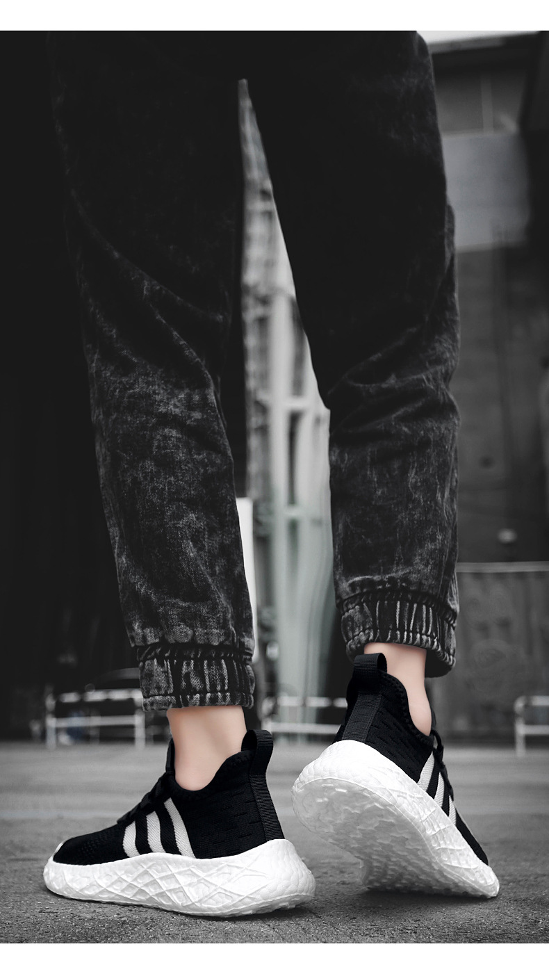 크로스 보더 고탄성 팝콘 새로운 운동화 남성용 부드러운 밑창 플라이-짠 메쉬 운동화 남성과 여성의 경량 남성 신발