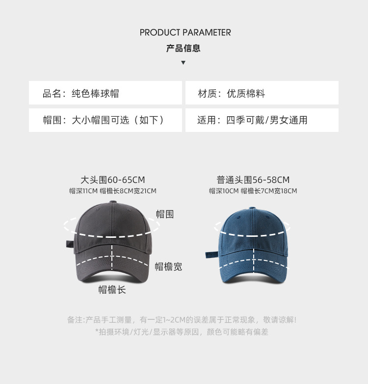 65cm 대형 헤드 패널 단색 야구 모자 소프트 탑 남성과 여성을위한 모든 경기 깊어 진 넓은 챙 모자 작은 얼굴을 보여줍니다
