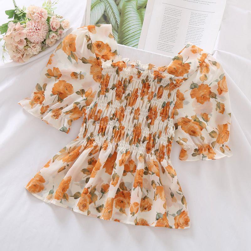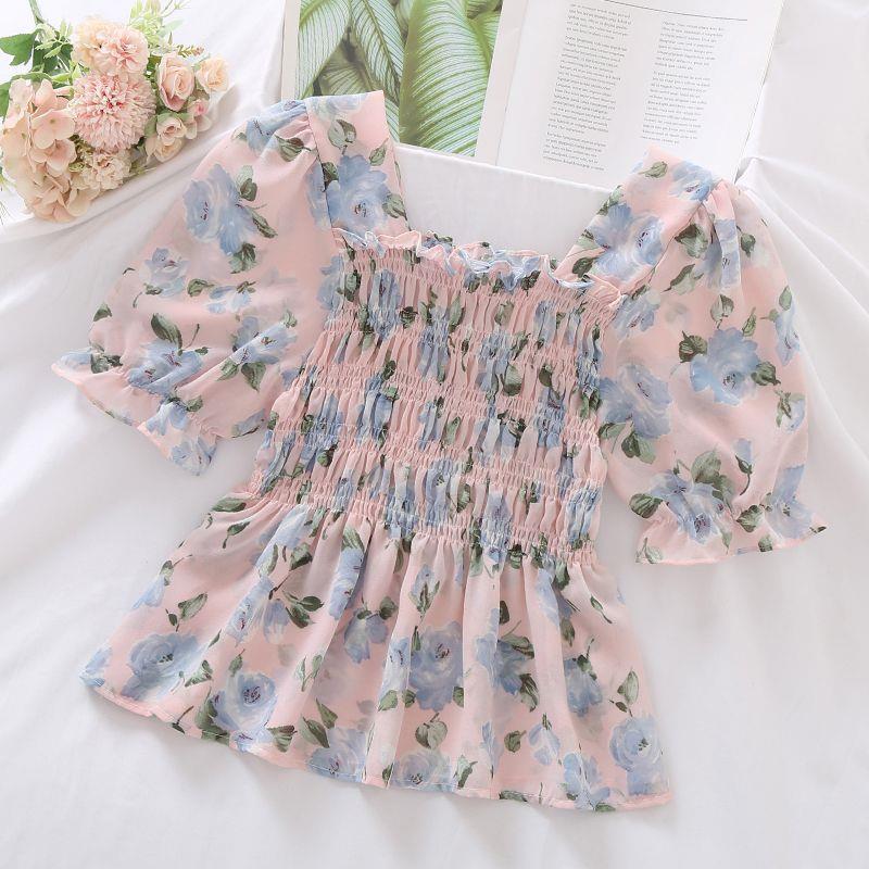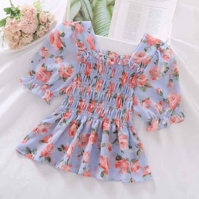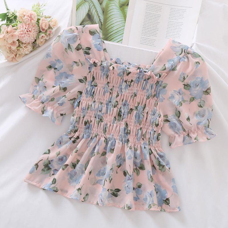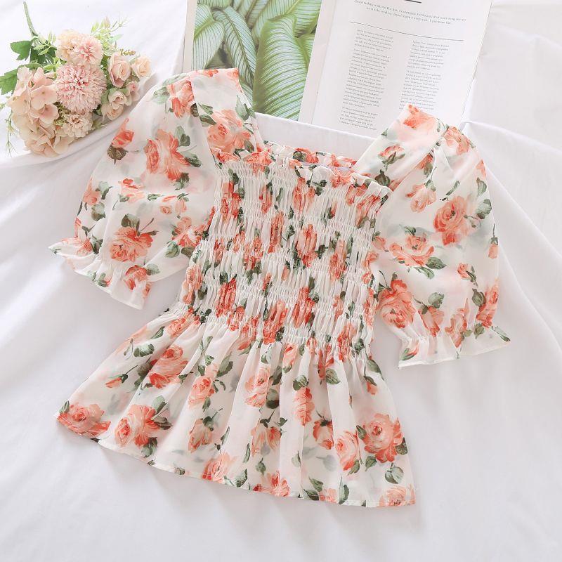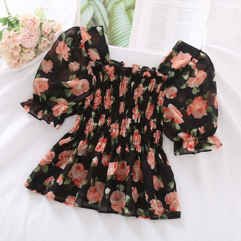 프랑스 꽃 쉬폰 셔츠 여성의 새로운 디자인 틈새 달콤한 섹시한 우아한 패션 올 매치 탑스토어 가기