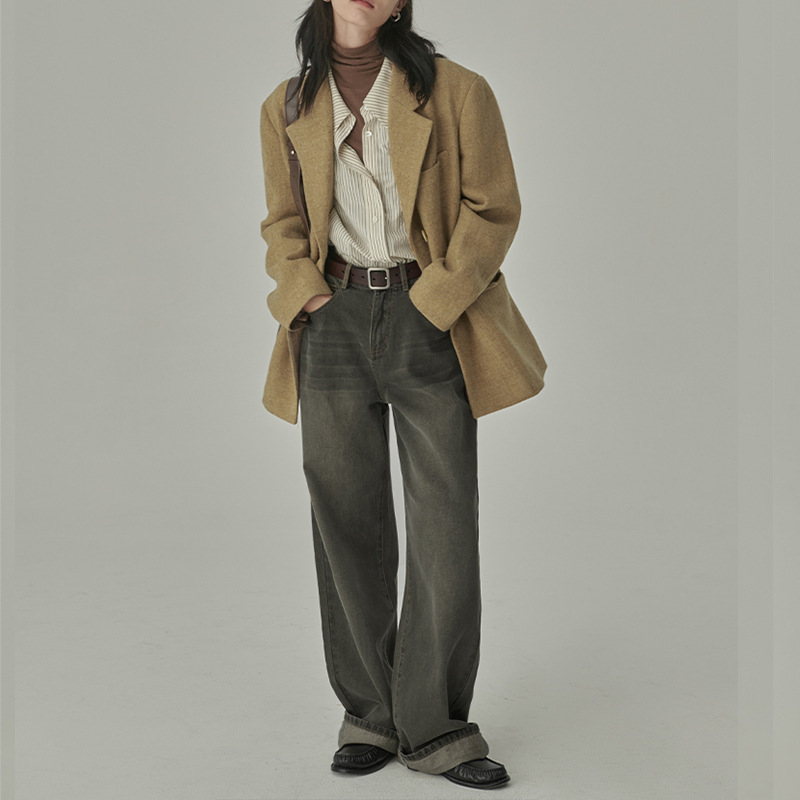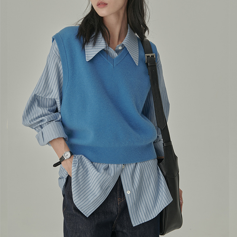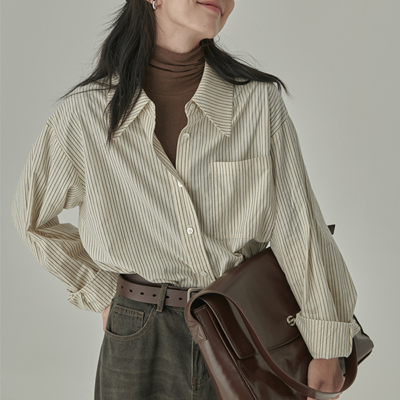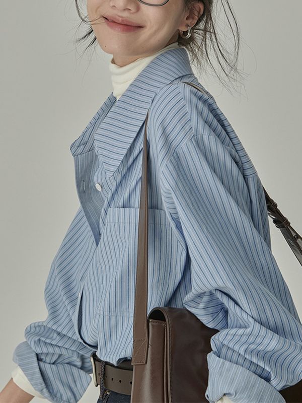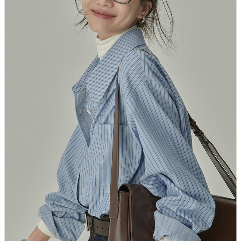 레스토랑 HAVE/라이스 이번 호 B 컬러 밸류 셔츠에 가을 새 블루 줄무늬 느슨한 드레이프 셔츠스토어 가기