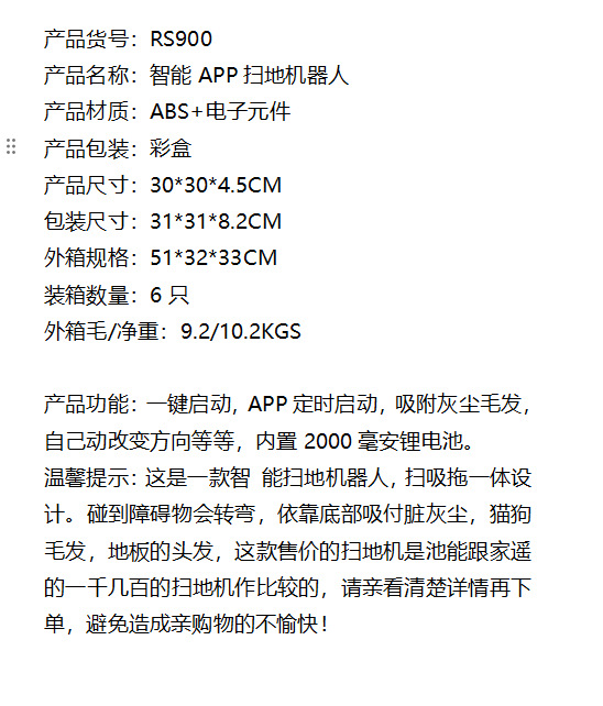 • RS900 기본 버전에는 APP, 리모컨, 물 탱크가 포함되어 있지 않습니다.
