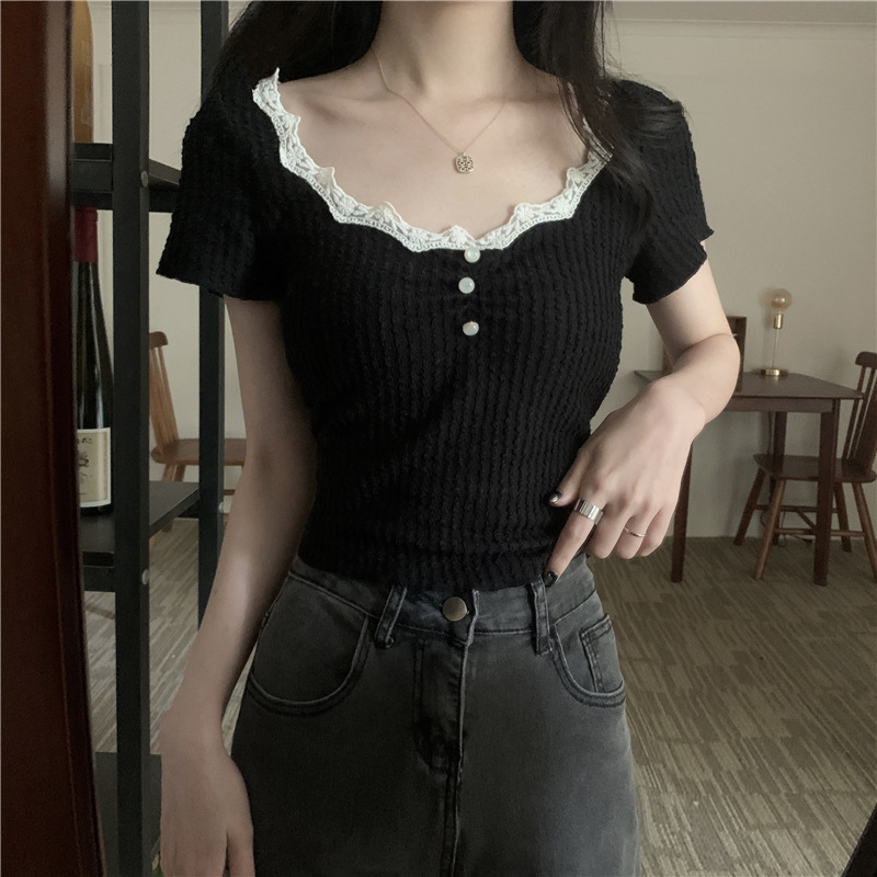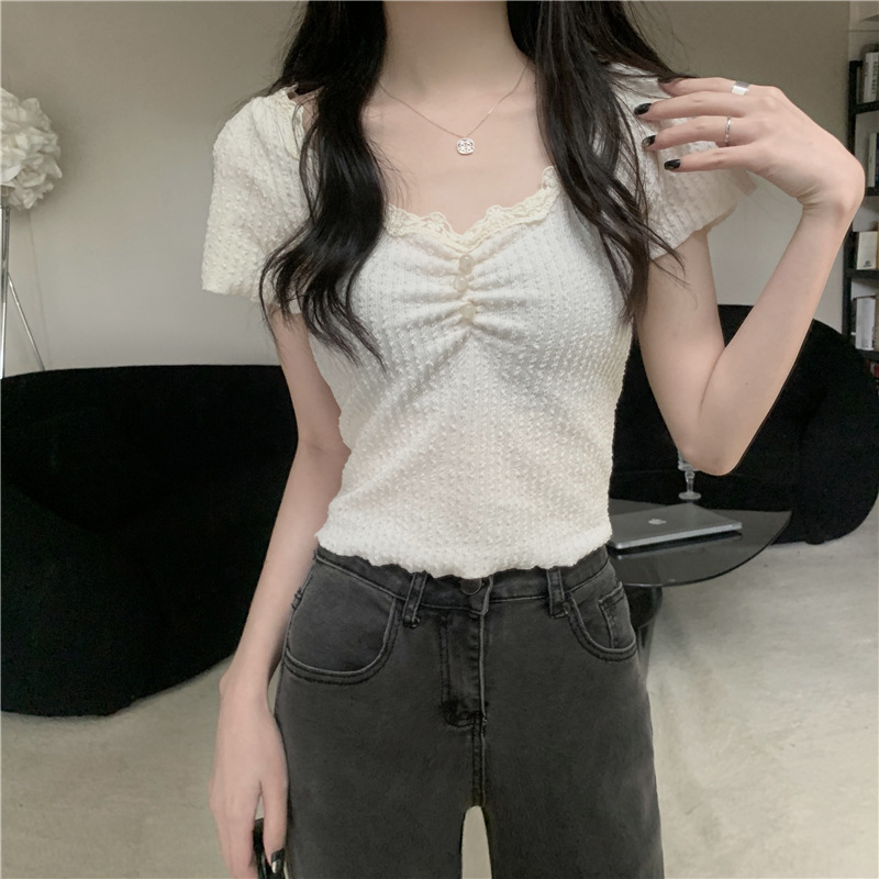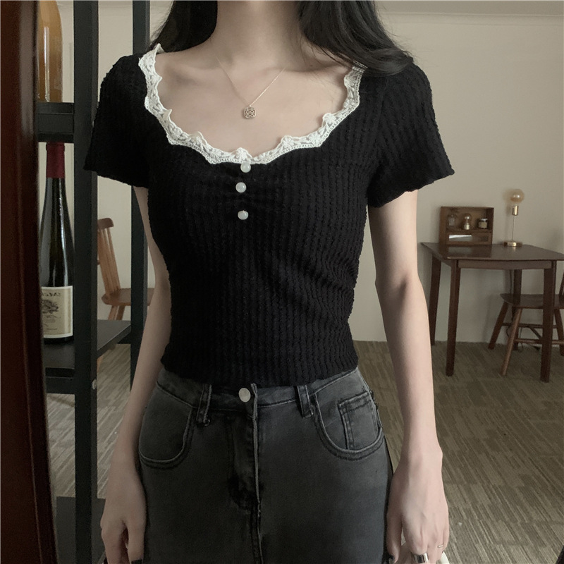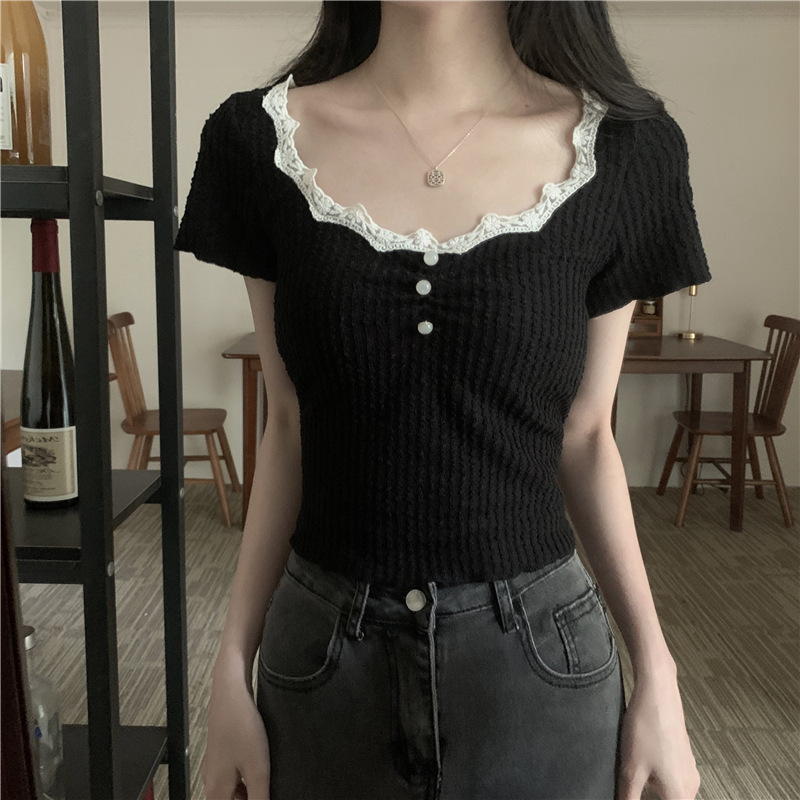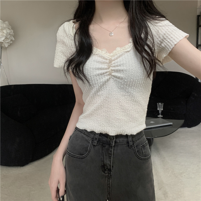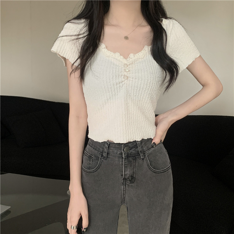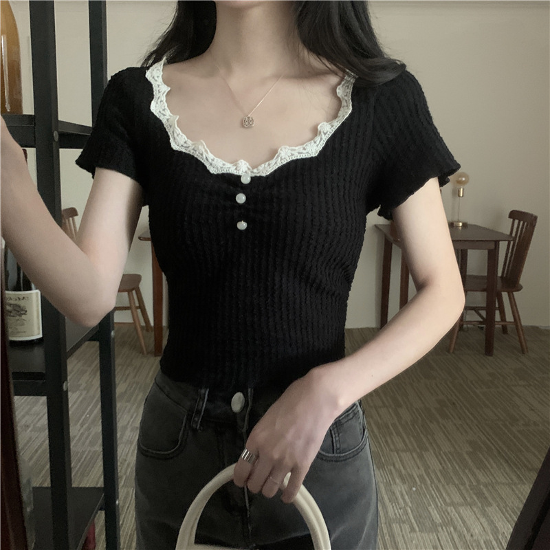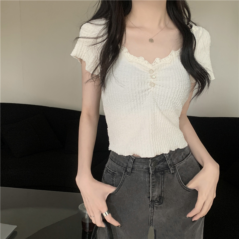 디자인 감각이 돋보이는 2025 여름 신상 섹시하고 달콤하면서도 매운 짧은 외출용 브이넥 니트 학생 상의 인스타그램 여성용스토어 가기