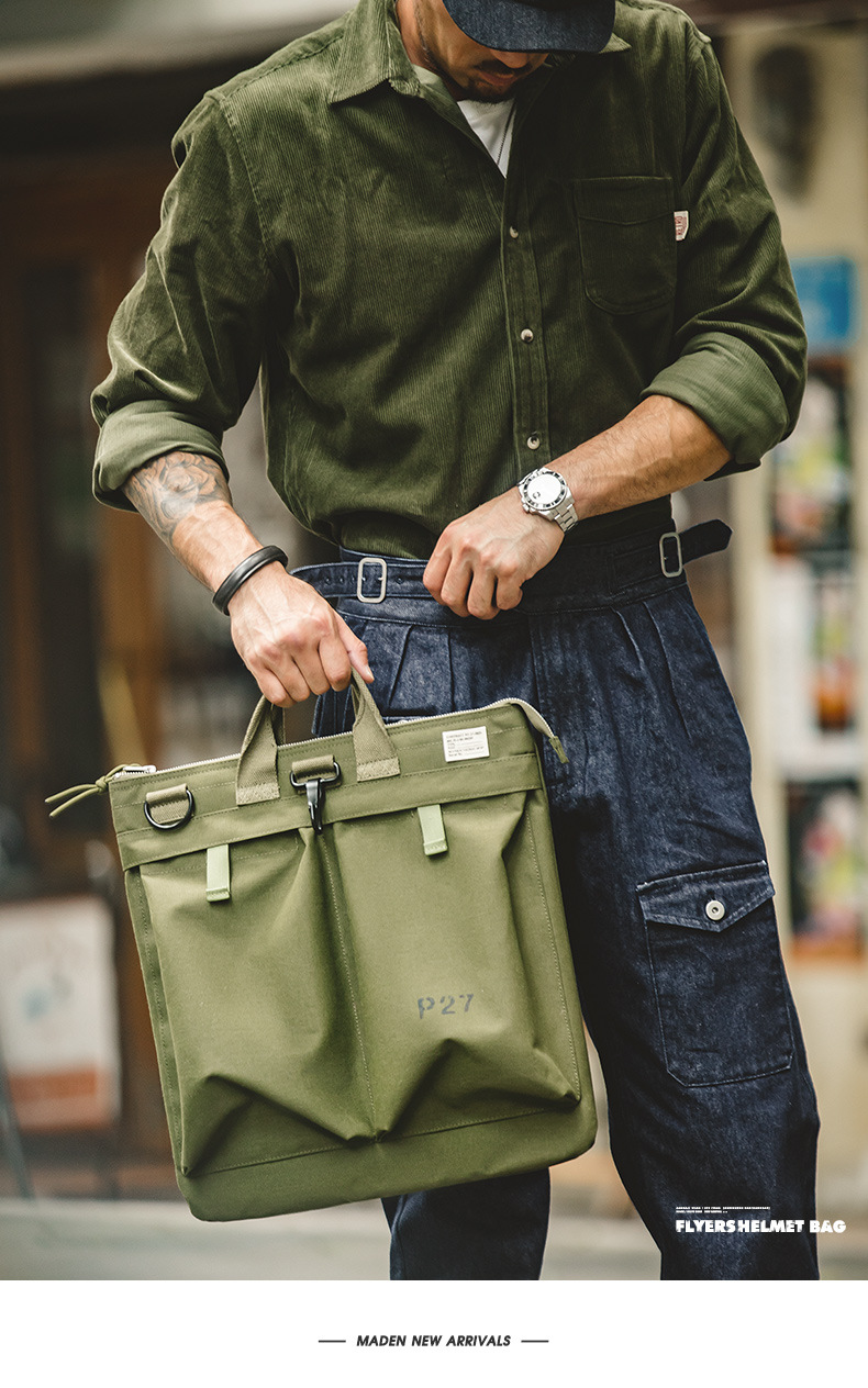Madden 툴링 레트로 헬멧 캔버스 크로스바디 에비에이터 어깨 기능성 남성용 대용량 태블릿 토트스토어 가기