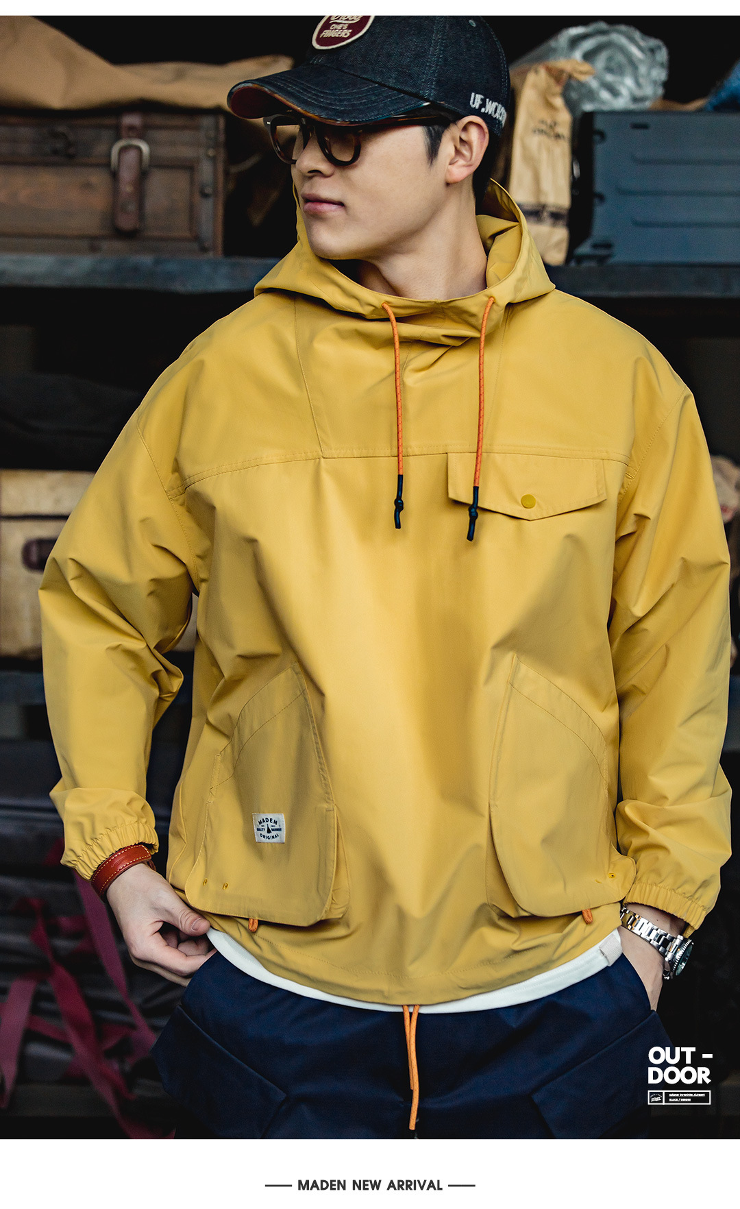 Madden Workwear Mountain Style 야외 멀티 포켓 후드 방풍 풀오버 탑 기능성 재킷 남성 가을스토어 가기