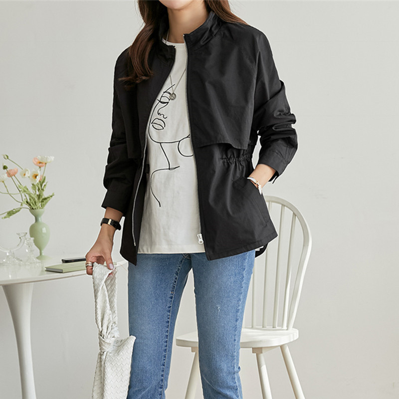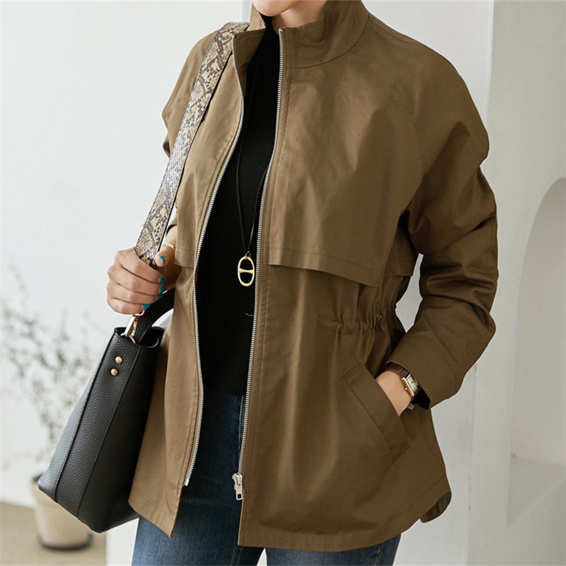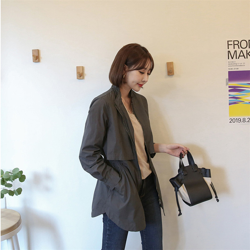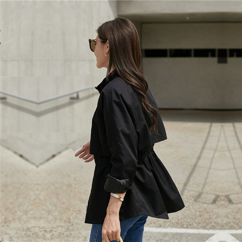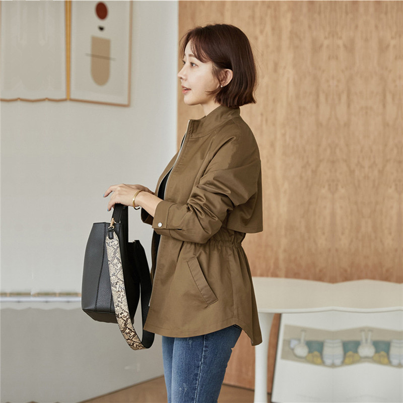 4 색 4 크기 작은 수직 칼라 도브테일 캐주얼 재킷 탑 드로스트링 허리 슬리밍 재킷 코트 여성스토어 가기