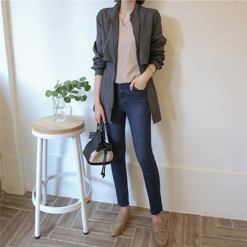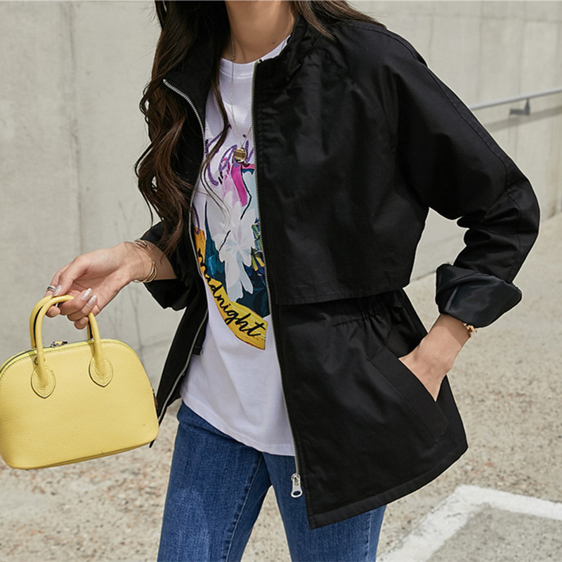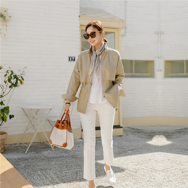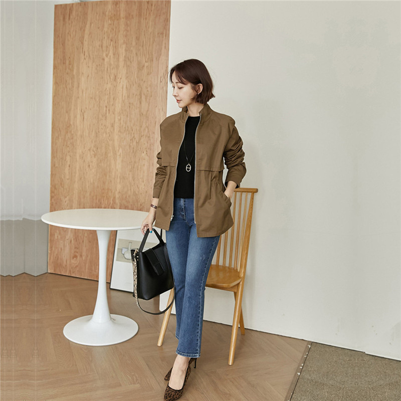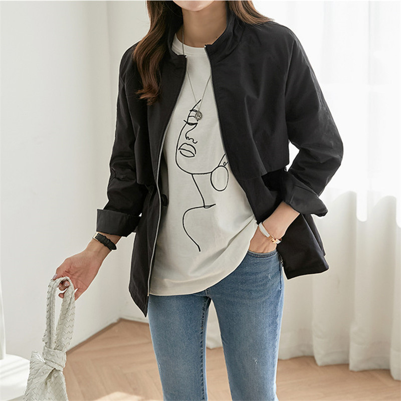 4 색 4 크기 작은 수직 칼라 도브테일 캐주얼 재킷 탑 드로스트링 허리 슬리밍 재킷 코트 여성스토어 가기