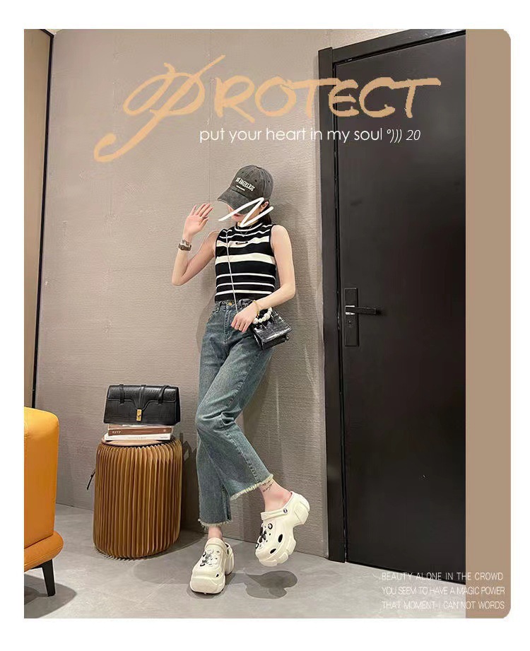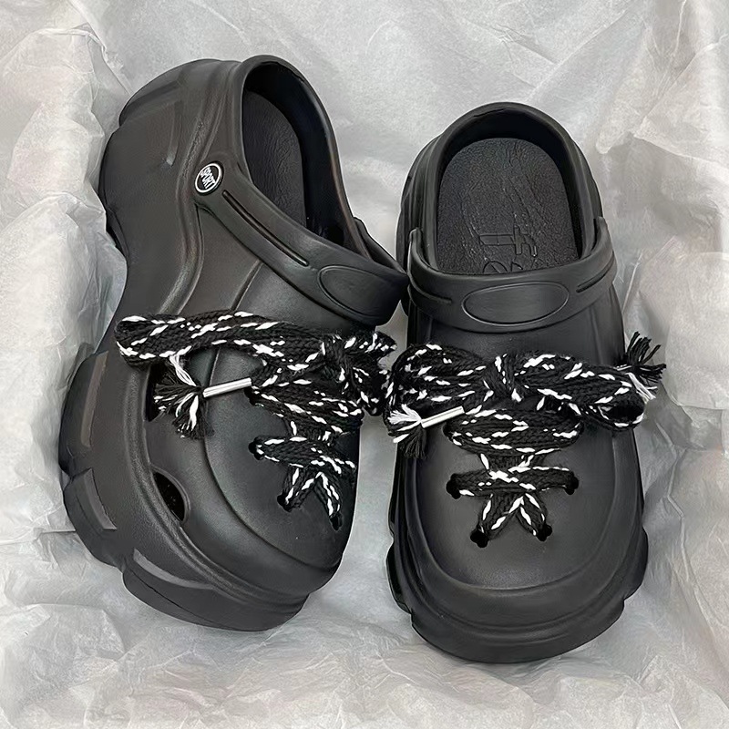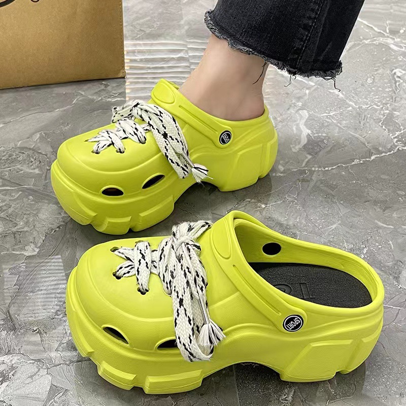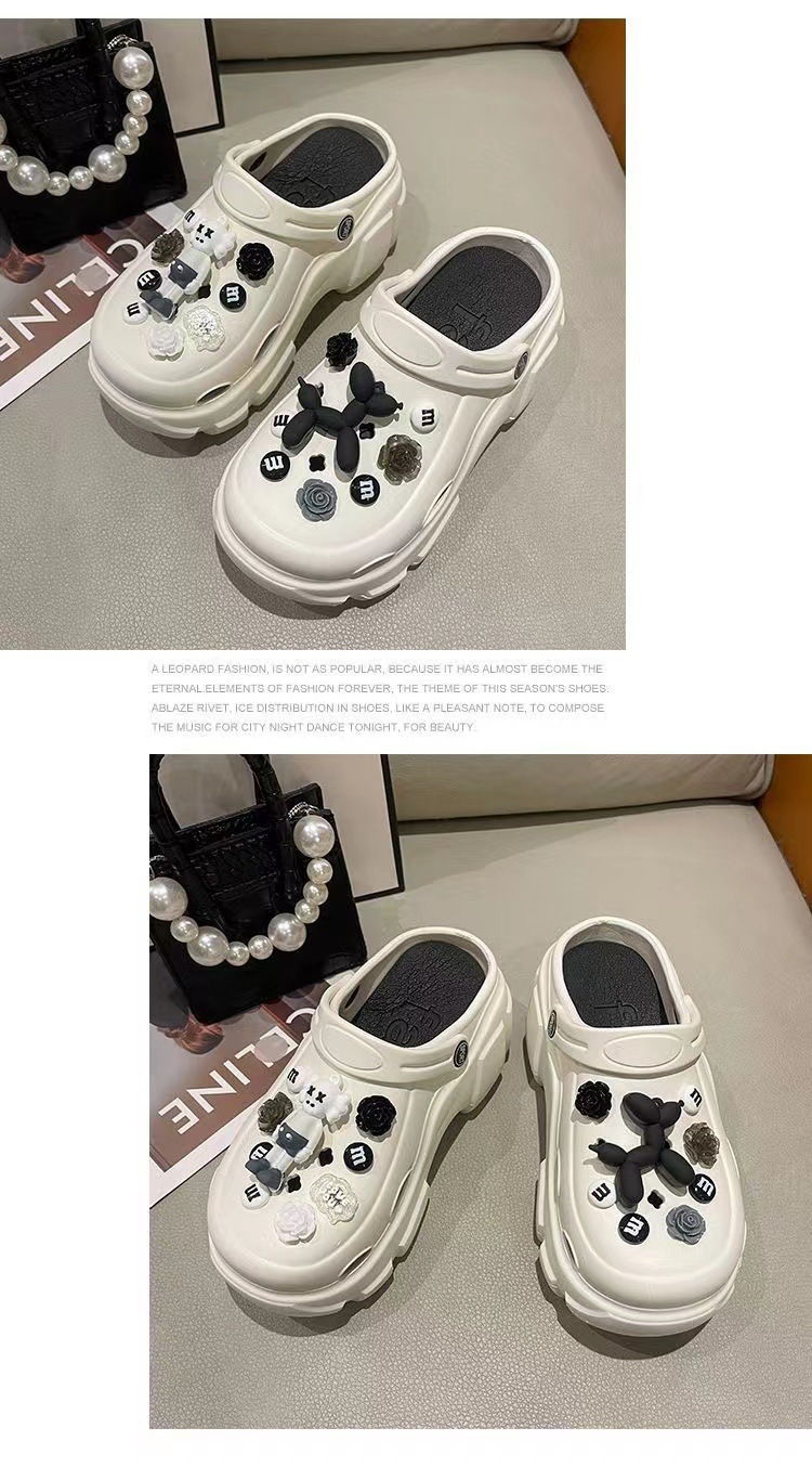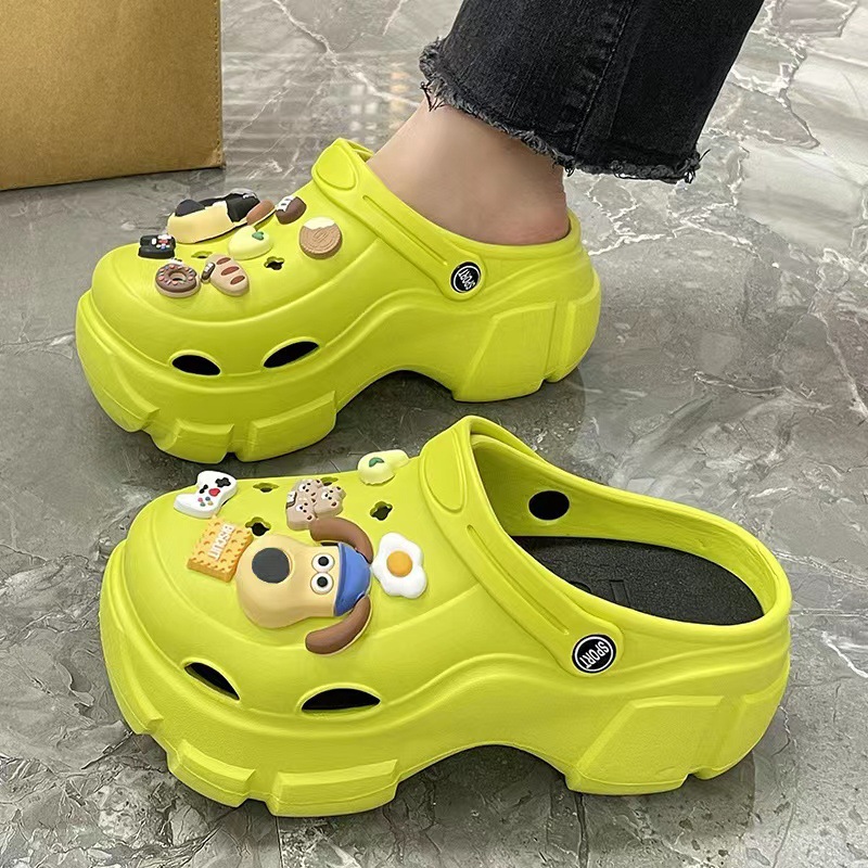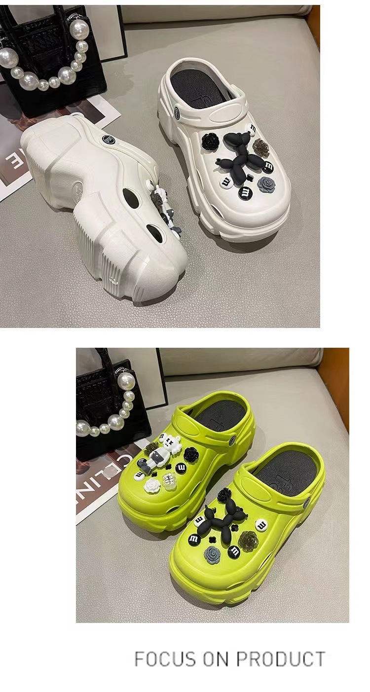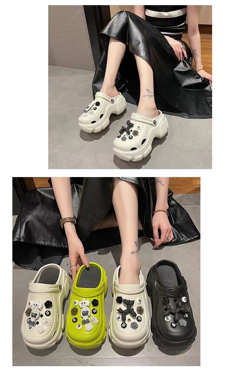 EVA 믹스 앤 매치 PVC 홀 슈즈 여름 겉옷 두꺼운 밑창 높이 증가 미끄럼 방지 패션 인터넷 인기 여성용 귀여운 비치 샌들스토어 가기