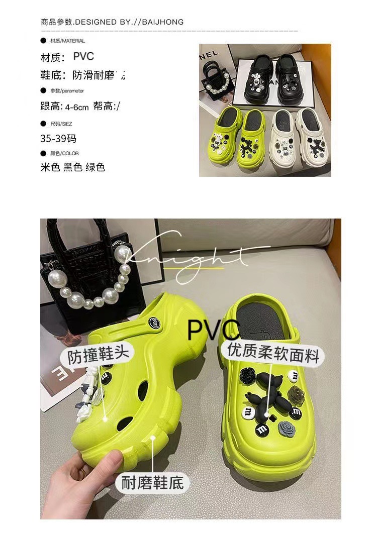 EVA 믹스 앤 매치 PVC 홀 슈즈 여름 겉옷 두꺼운 밑창 높이 증가 미끄럼 방지 패션 인터넷 인기 여성용 귀여운 비치 샌들