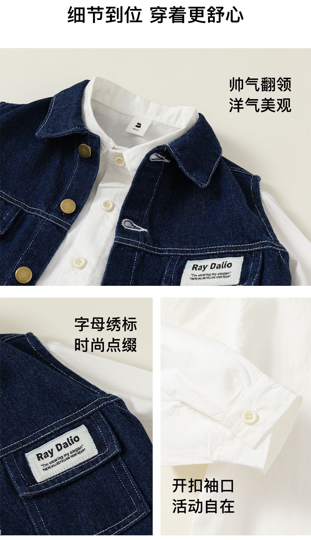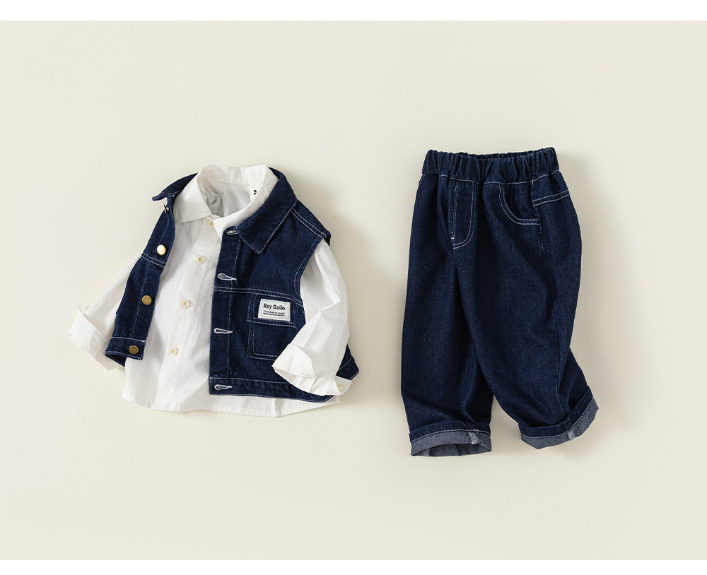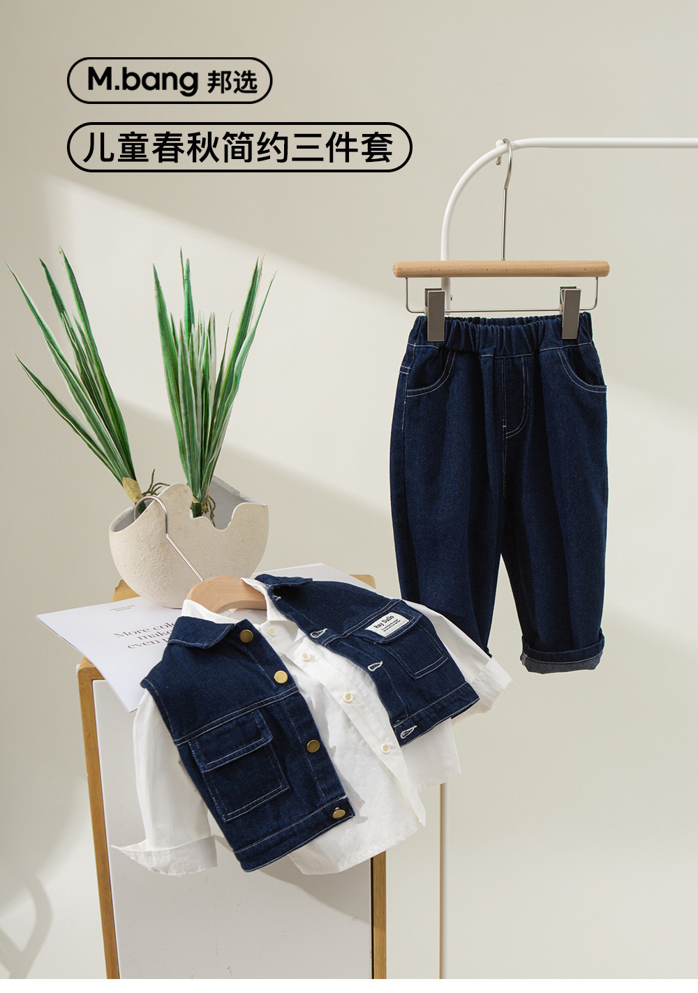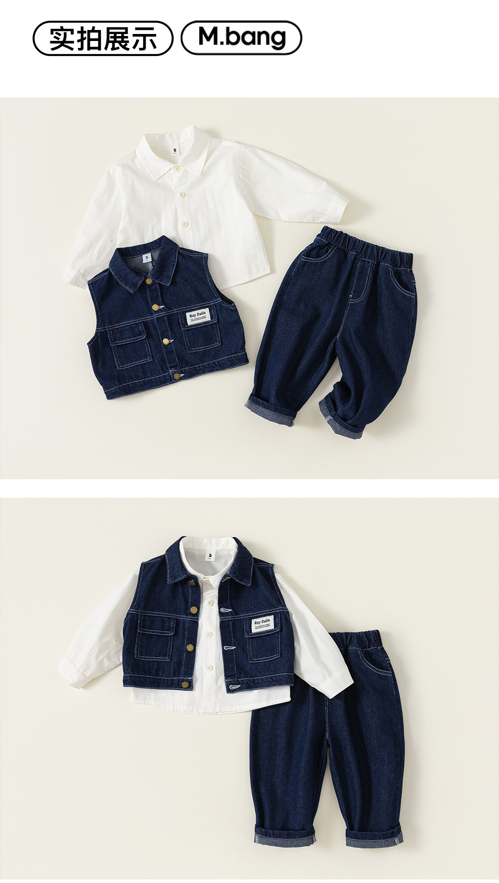유바오 아동복 남아 가을옷 세련된 데님 아기옷 조끼 흰색 셔츠 남아 3종 세트