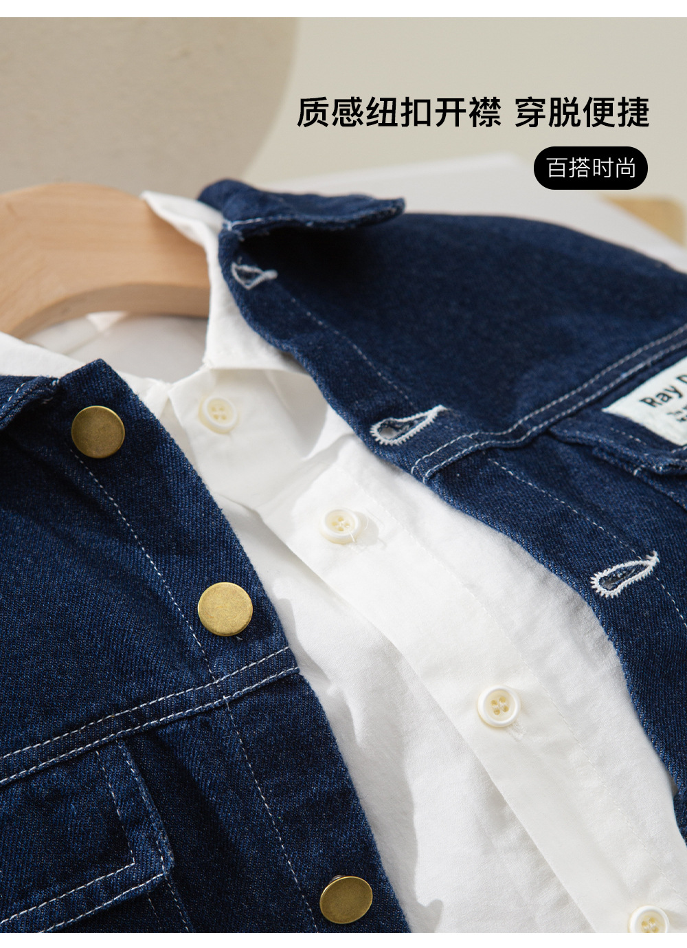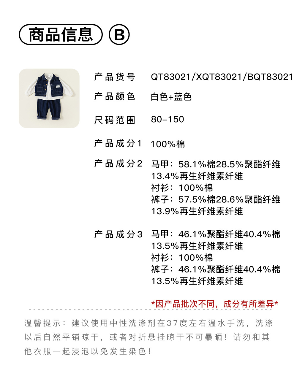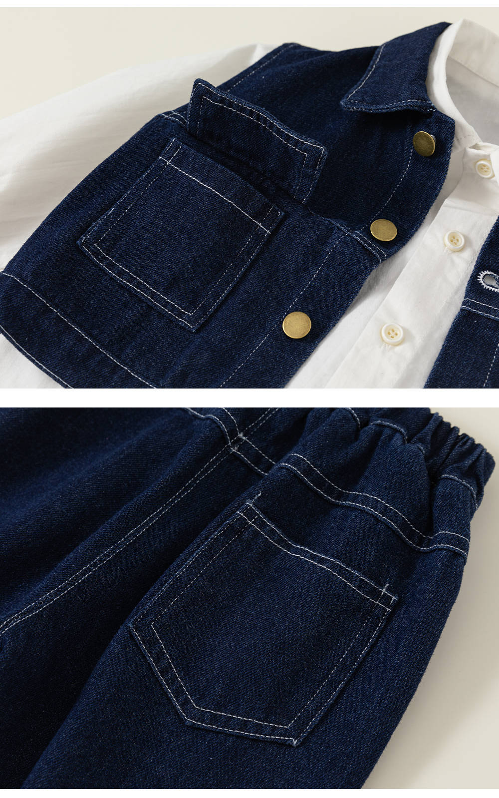 유바오 아동복 남아 가을옷 세련된 데님 아기옷 조끼 흰색 셔츠 남아 3종 세트