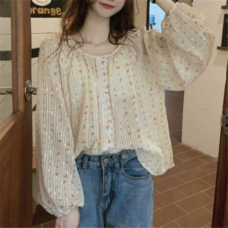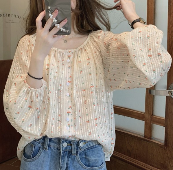이른 봄과 가을 신선한 쉬폰 꽃 셔츠 여성의 디자인 감각 틈새 시크 얇은 홍콩 스타일 여름 긴 소매 탑스토어 가기