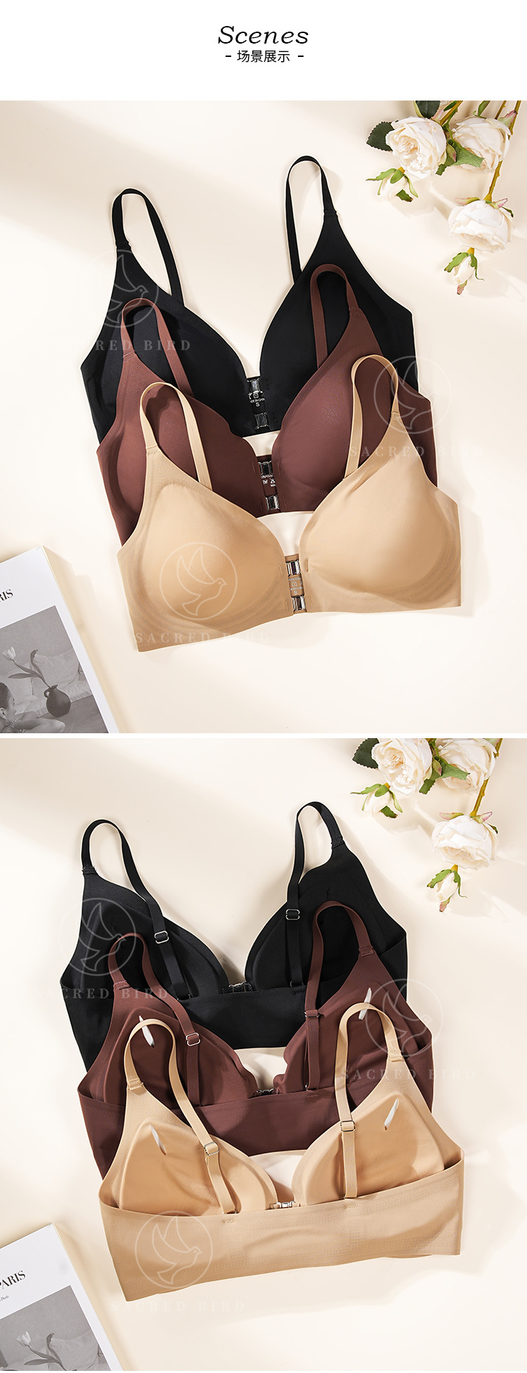스틸 링이없는 프론트 버클이있는 여성용 조절 가능한 브래지어 유럽 및 미국 플러스 사이즈 매끄럽고 아름다운 등 소프트 지원 스포츠 통기성 속옷스토어 가기