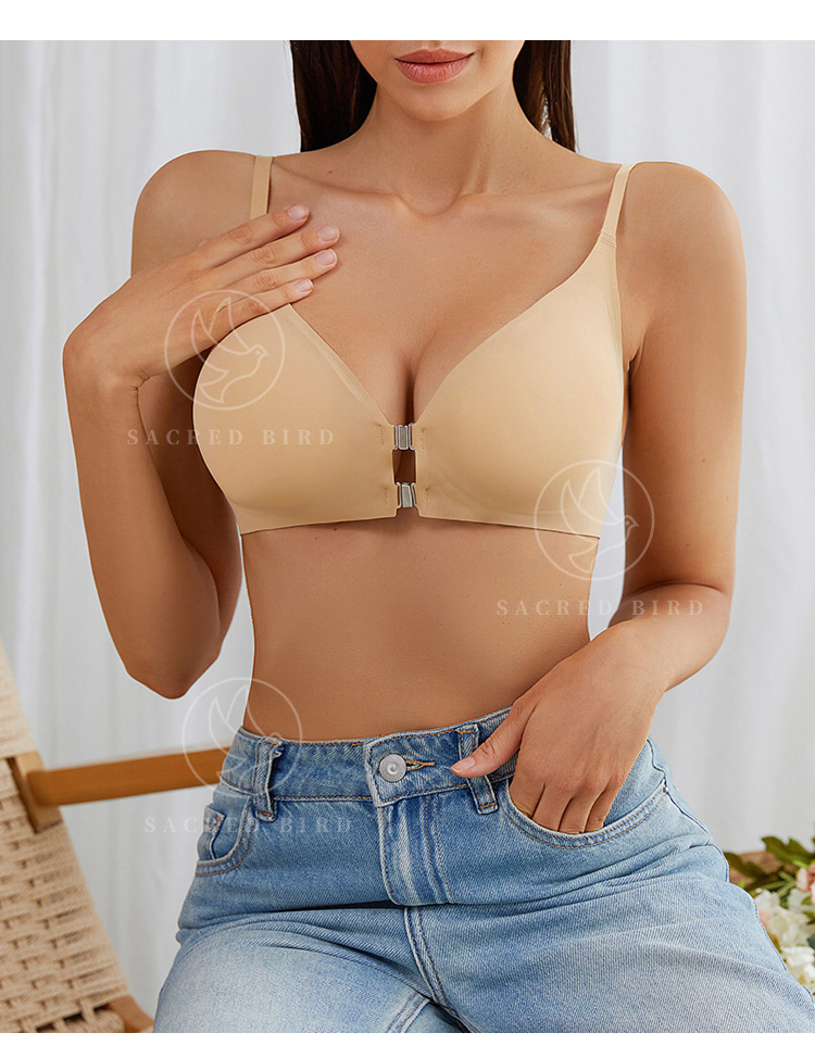스틸 링이없는 프론트 버클이있는 여성용 조절 가능한 브래지어 유럽 및 미국 플러스 사이즈 매끄럽고 아름다운 등 소프트 지원 스포츠 통기성 속옷