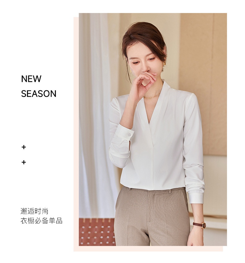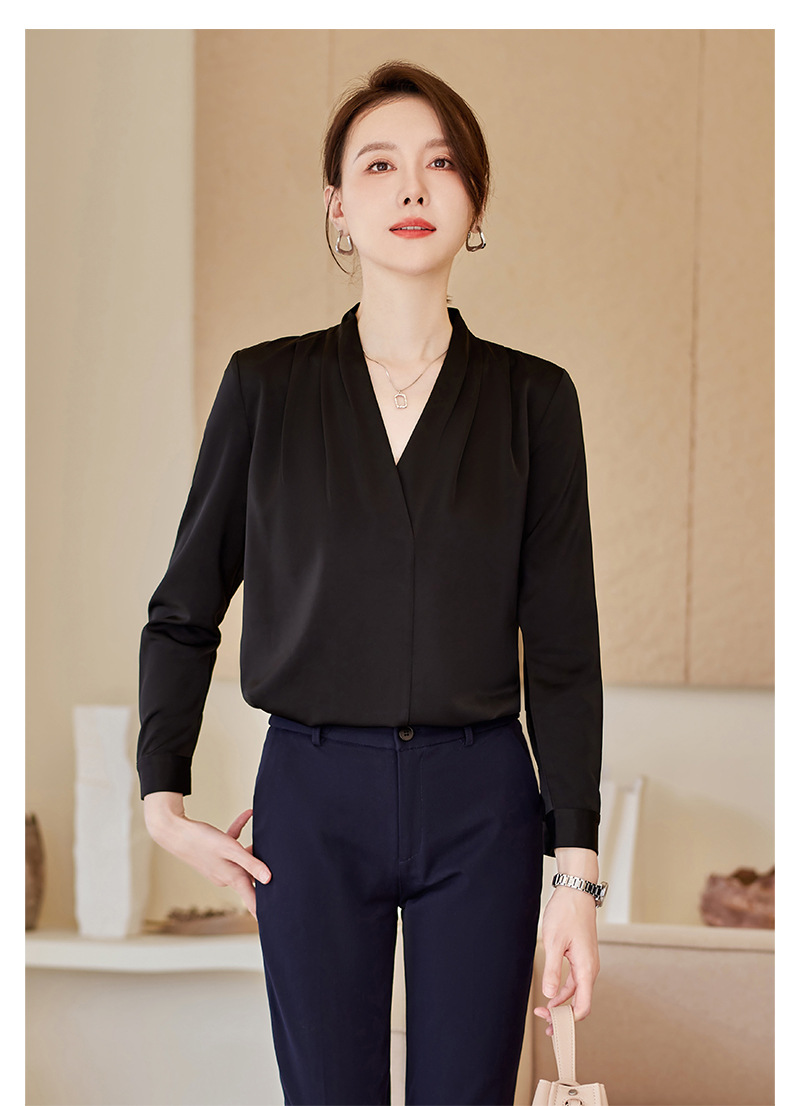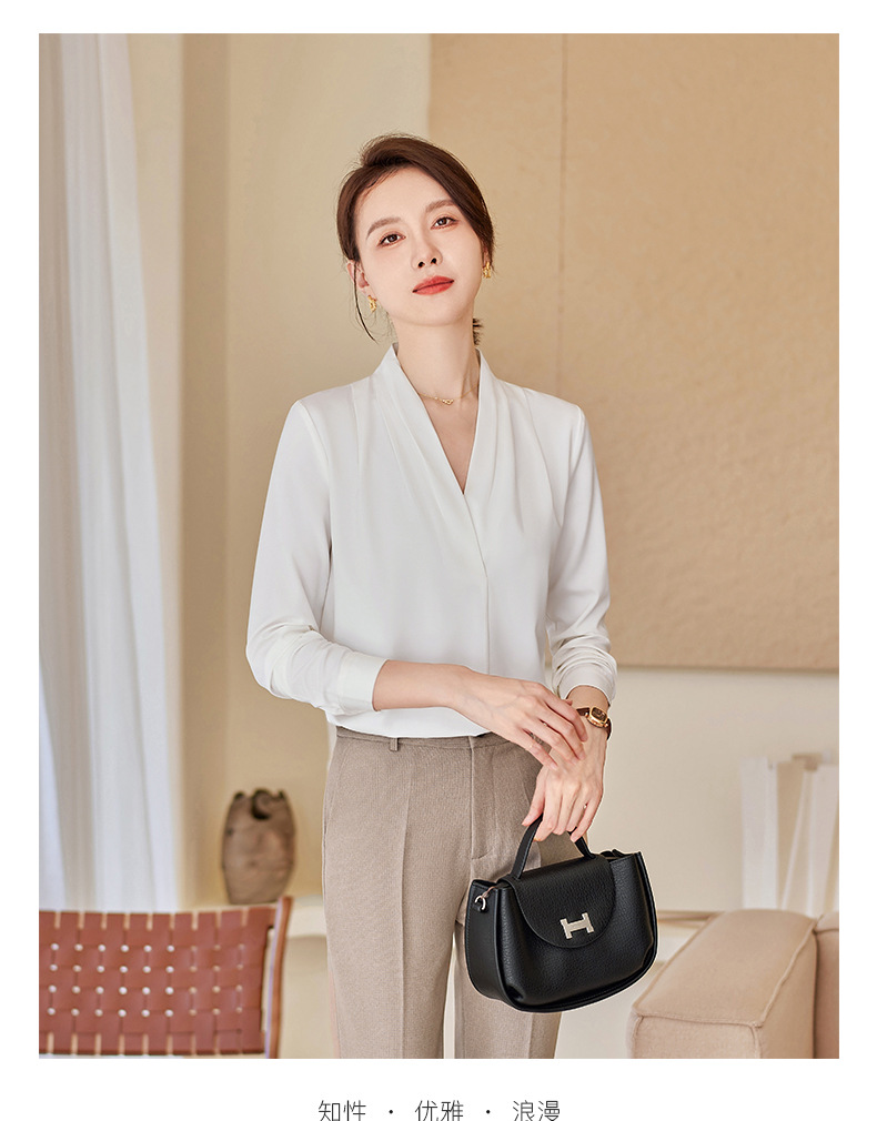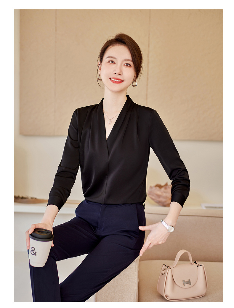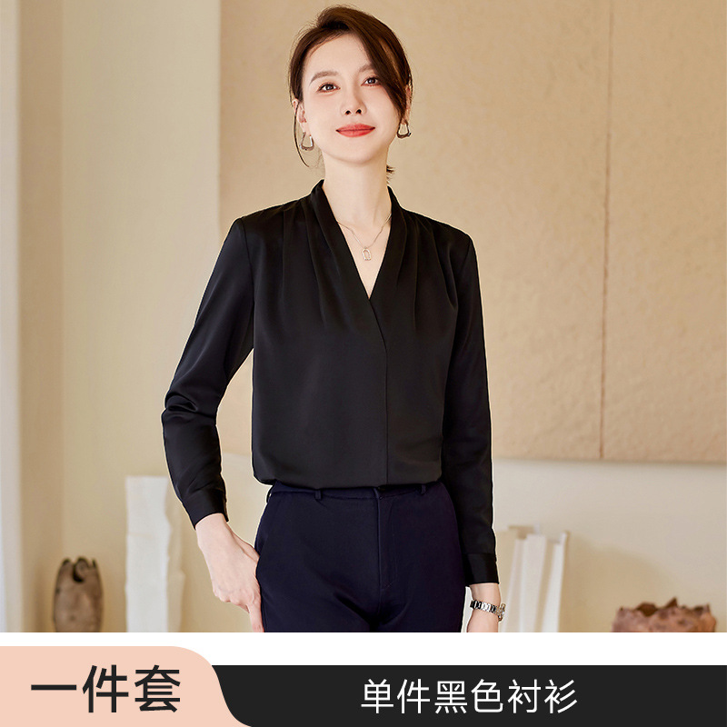 아세트산 새틴 셔츠 여성용 긴 소매 봄과 가을 새로운 풀오버 탑베이스 옷 우아한 V-넥 전문 셔츠