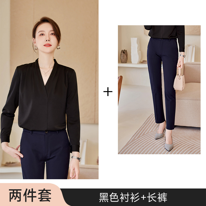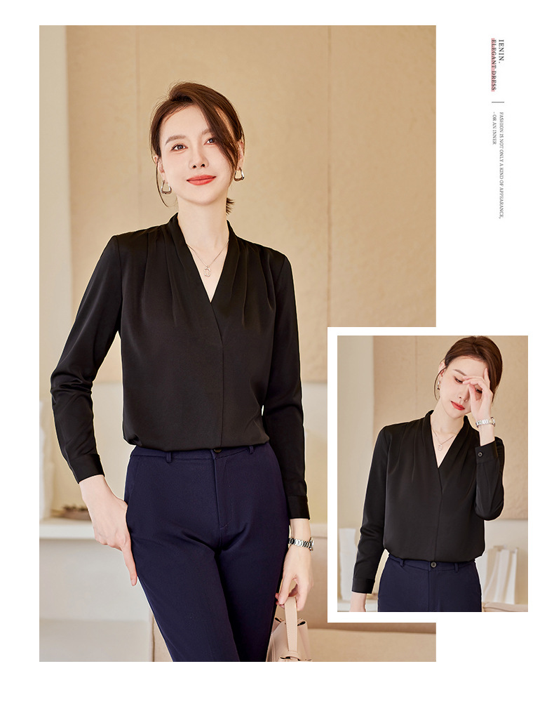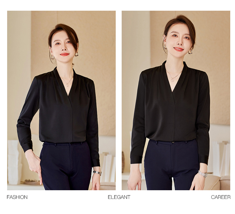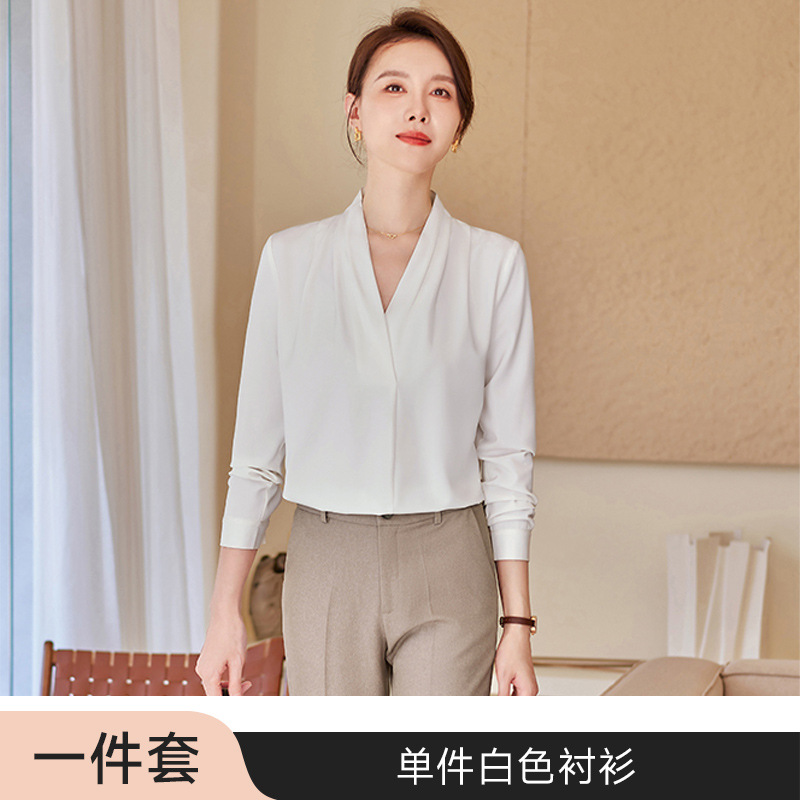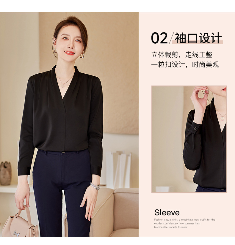 아세트산 새틴 셔츠 여성용 긴 소매 봄과 가을 새로운 풀오버 탑베이스 옷 우아한 V-넥 전문 셔츠