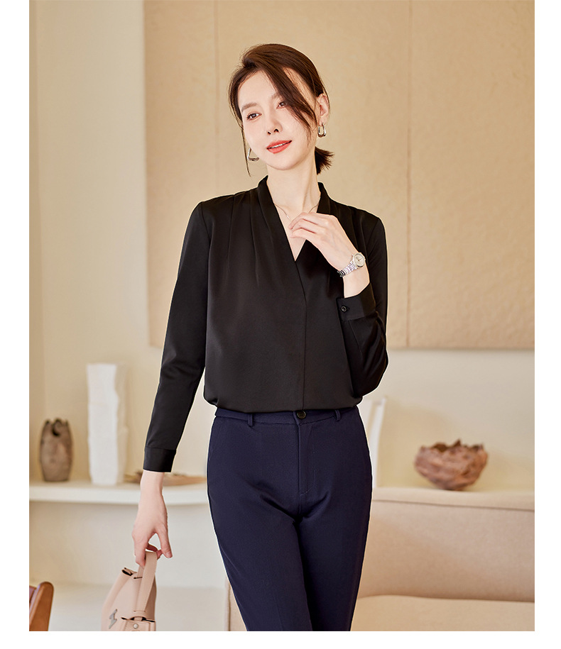 아세트산 새틴 셔츠 여성용 긴 소매 봄과 가을 새로운 풀오버 탑베이스 옷 우아한 V-넥 전문 셔츠스토어 가기