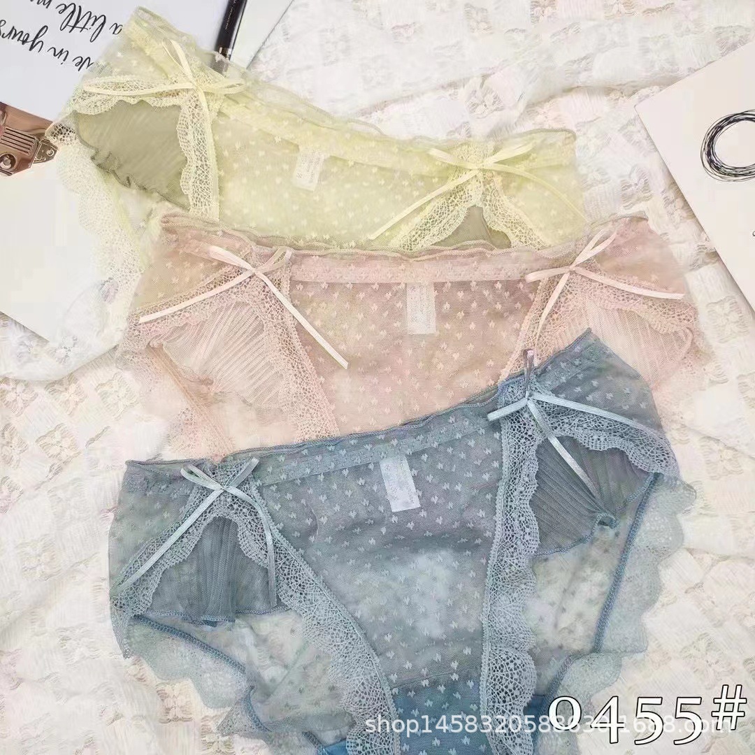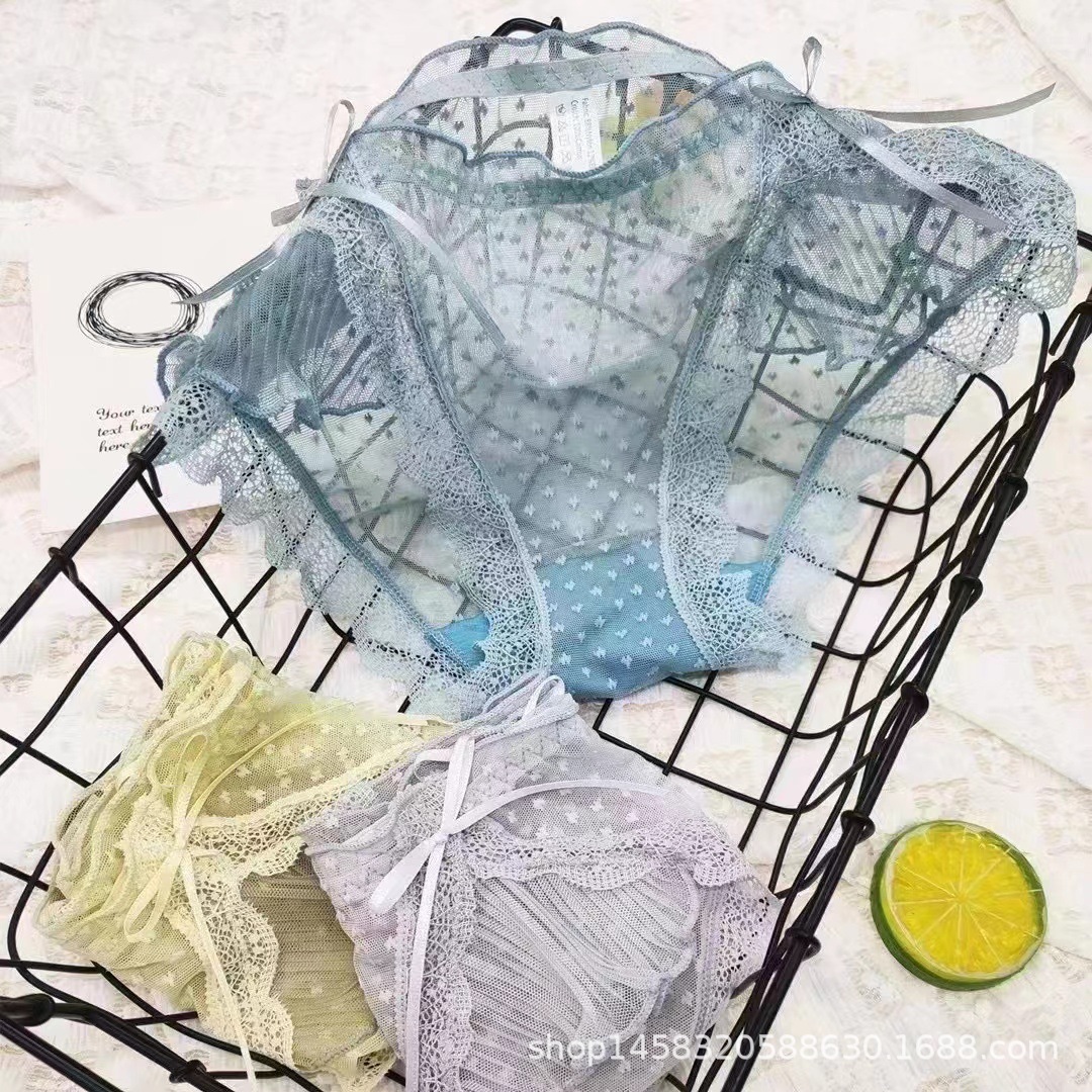 속눈썹 곡선 일본 스타일 달콤한 러플 섹시한 귀여운 레이스 메쉬 여성 속옷 여름 낮은 허리 핫 세일스토어 가기